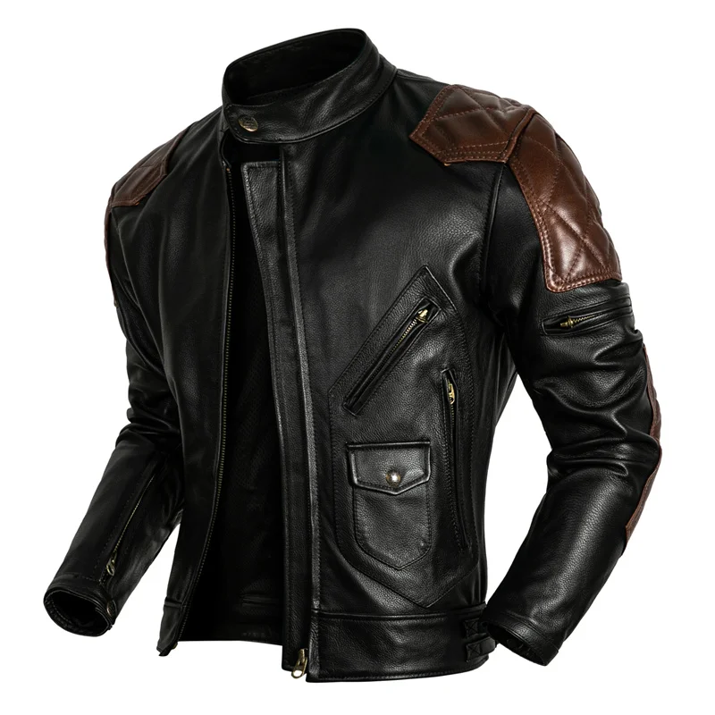 NEW Motorcycle Coat Cowhide Leather Jacket Men's Natural Genuine Leather Clothes Protective Motor Biker Riding Coat 3XL-5XL