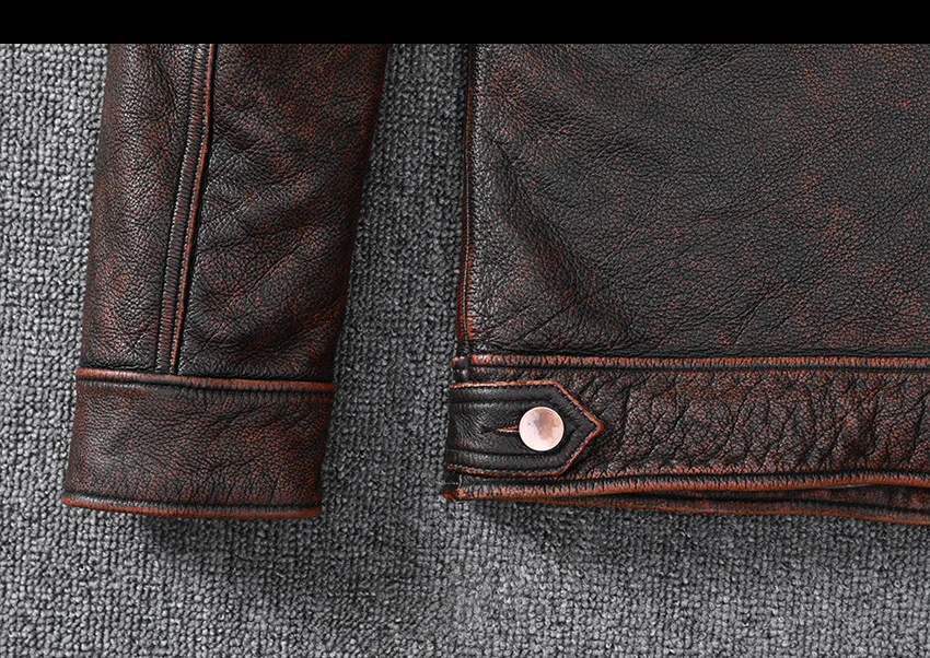 New Vintage Brown Workwear Style Cowboy Genuine Leather Jacket Natural Cowhide Coat Men's Stone Mill Old Style Clothes