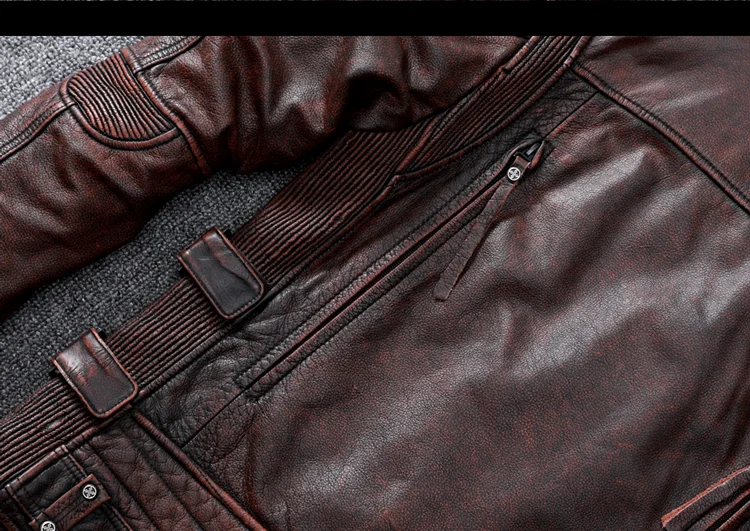 Vintage Brown Motorcycle Leather Jacket Men Natural Genuine Cowhide Jackets Autumn Slim Fit Biker's Ooblique Zipper Coat