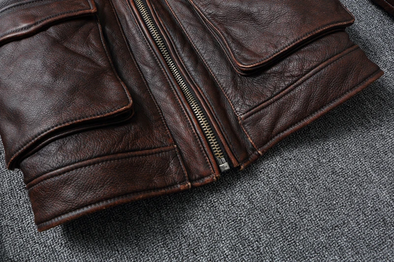 Vintage Red Brown Genuine Leather Jacket Men Soft Real Cowhide Black Winter Coat Biker Jackets Jaqueta Masculina De Couro