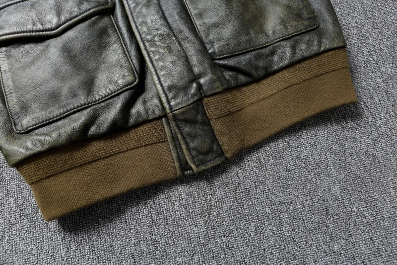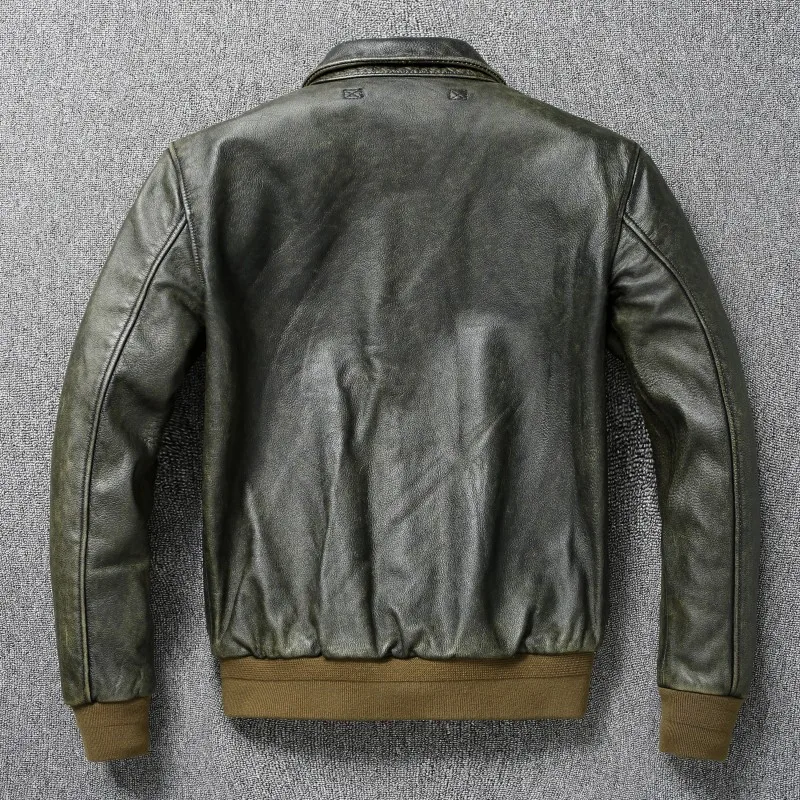 Classic Military A2 Air Force Leather Flight Jackets Vintage Stonewashed Old Cow Leather Jacket Men Soft Cowhide Mens Coat
