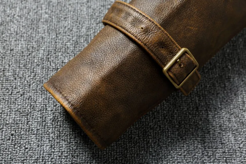 Heavy Milled Vintage Brown Head Layer Real Cowhide Jacket Men Genuine Leather Coat Multi-Pocket Hunting Jackets Biker Coat