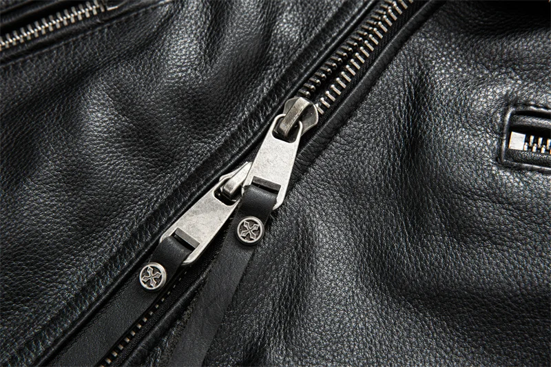 Motorcycle Jacket Real Cowhide Leather Jacket Men's Motorcycle Riding Jacket Genuine Leather Mens Motor Biker Jackets S-XL