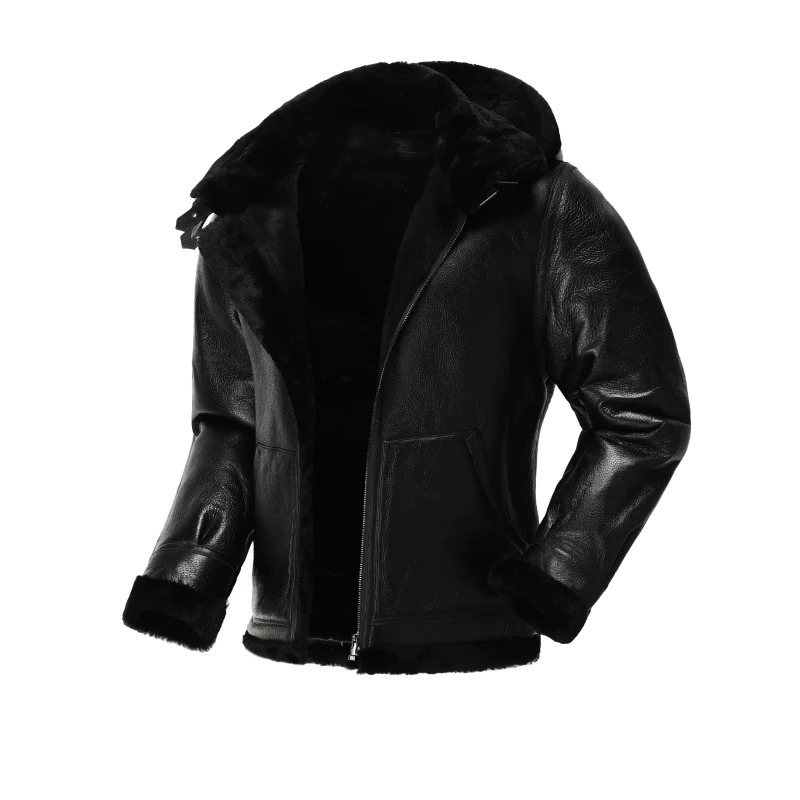 Natural Sheepskin Shearling Jacket Hood Warm Winter Coat Men Fur Jackets Men Genuine Leather Jacket мужские кожаные куртки