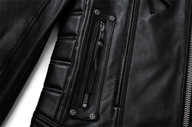 Protective Motorcycle Clothing Cowhide Leather Leather Men's Motorcycle Riding Clothing Calfskin Leather Jacket Biker Coat Men