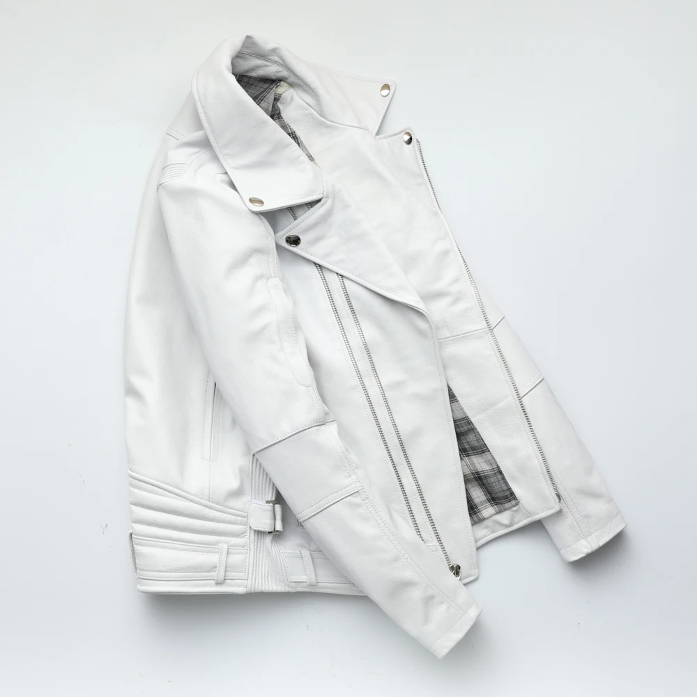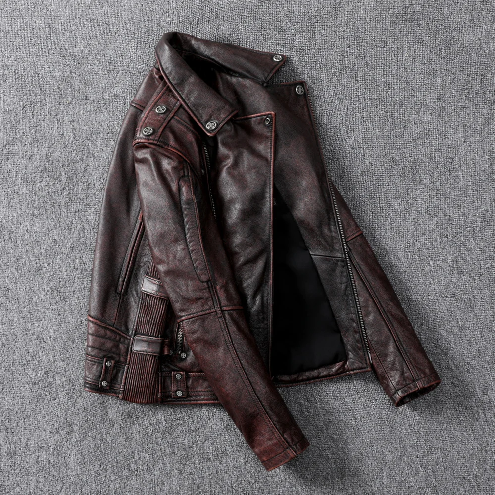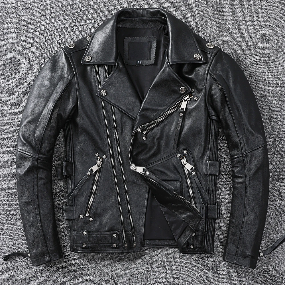 Black Motorcycle Leather Jacket Men Natural Genuine Cowhide Slim Fit Vintage Brown Mens Biker Racer Jackets Oblique Zipper S~9XL