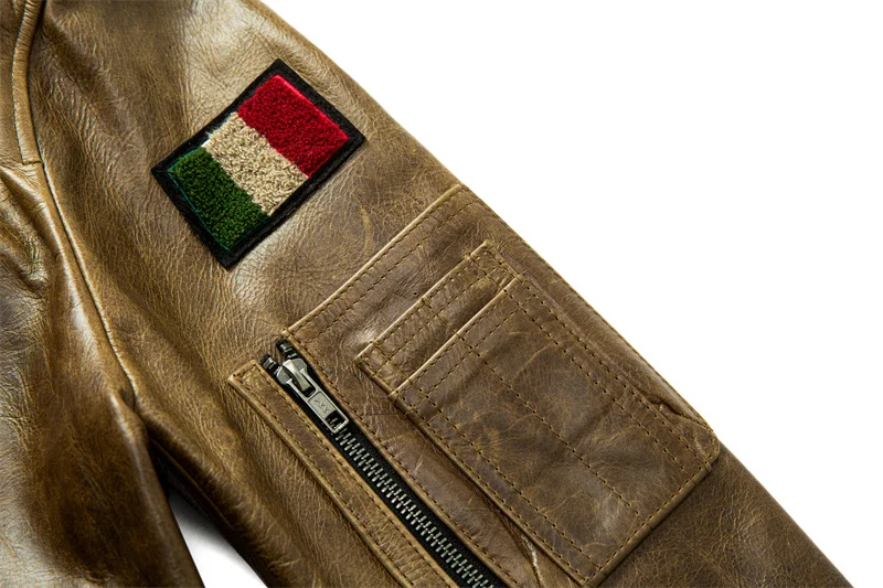 Indian Embroidery Skull Flight Jackets Oil Waxed Horsehide Genuine Leather Jacket Men Air Force Pilot Coat Aviator Clothes