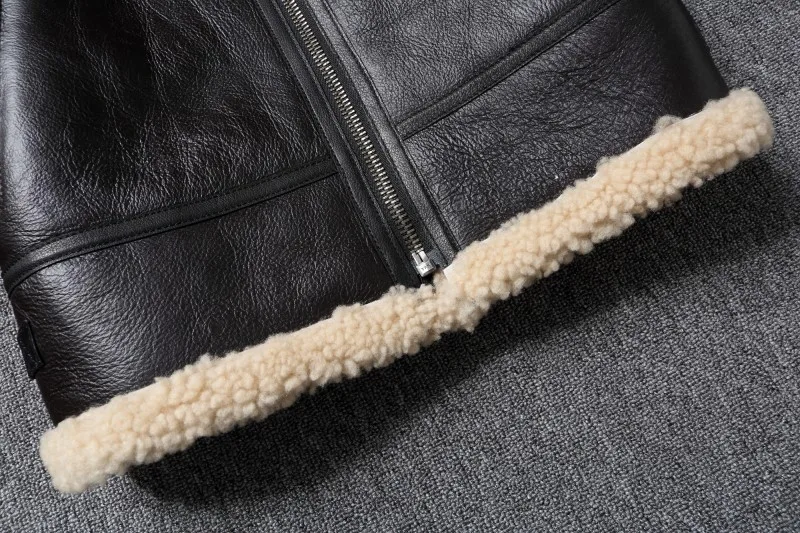 Natural Fur Sheepskin Shearling Jackets Thick Warm Men Fur Coat Winter Flight Coats Mens Genuine Leather Jacket Male Clothing