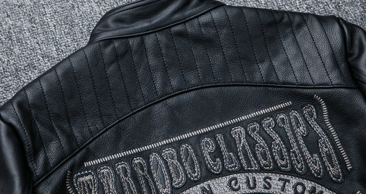 New Black Embroidery Skull Motorcycle Leather Jackets Natural Cowhide Motor Jacket Biker Leather Coat Slim Clothing Racer Coats
