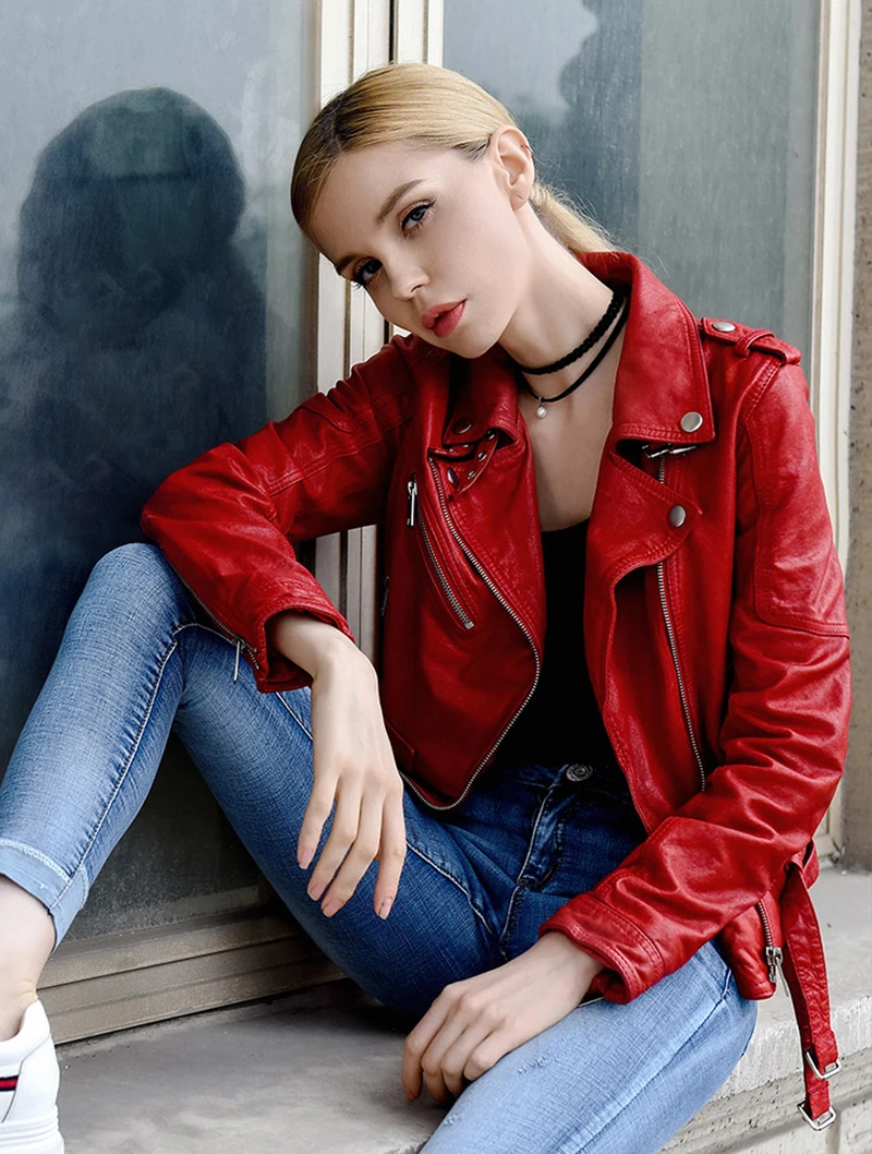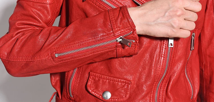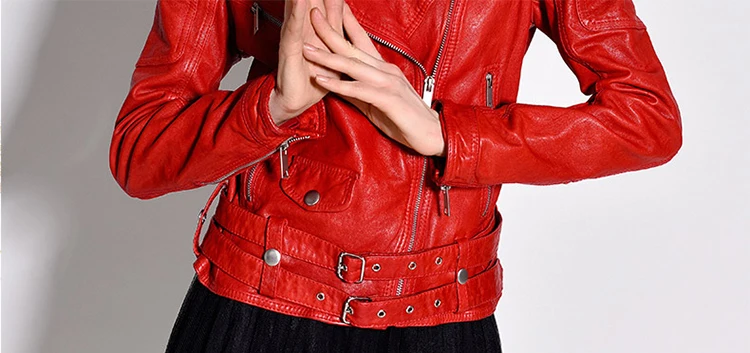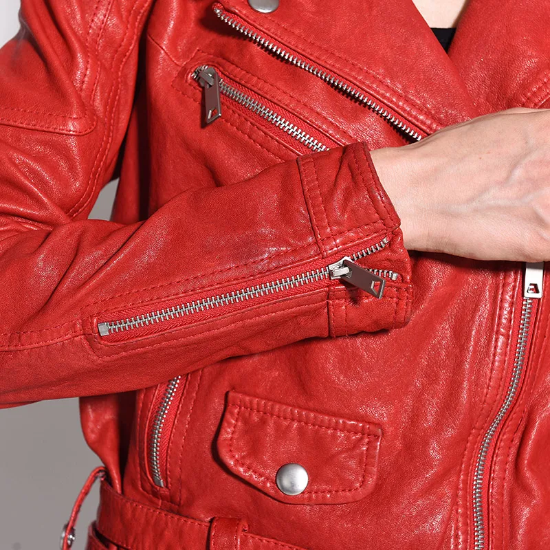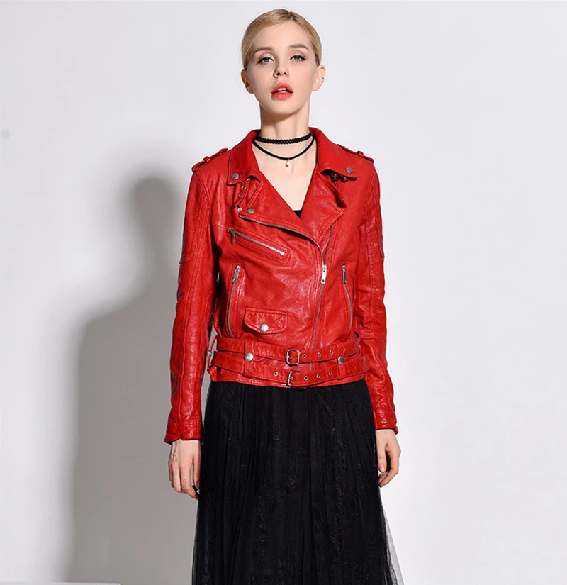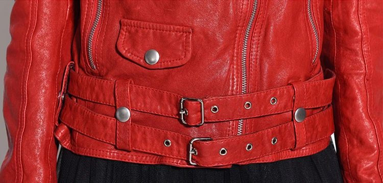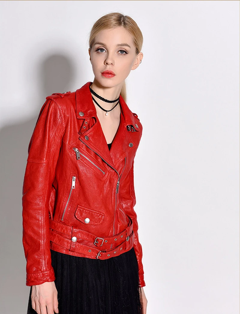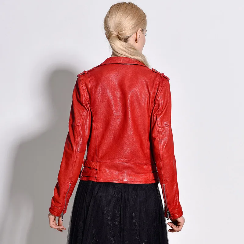 Women Genuine Leather Jacket Soft 100% Tanned Sheepskin Double Belts Female Leather Coat Ladies Biker Clothing Autumn M307