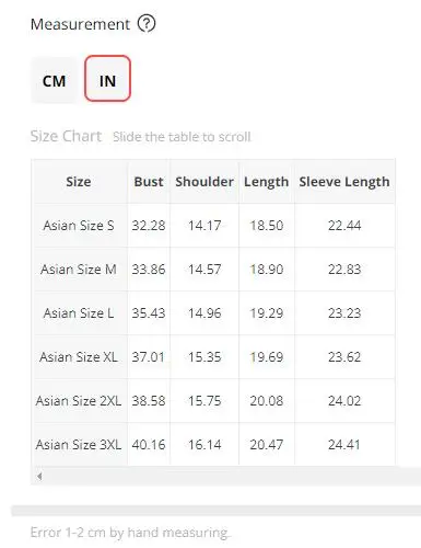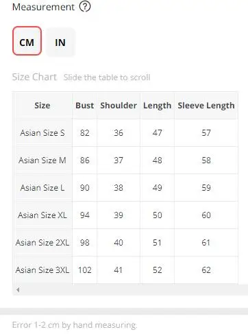 1. All measurements are in CM with 1-2cm measurment tolerance