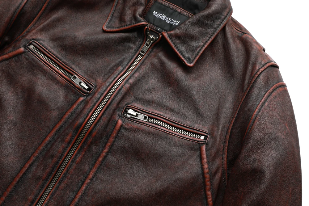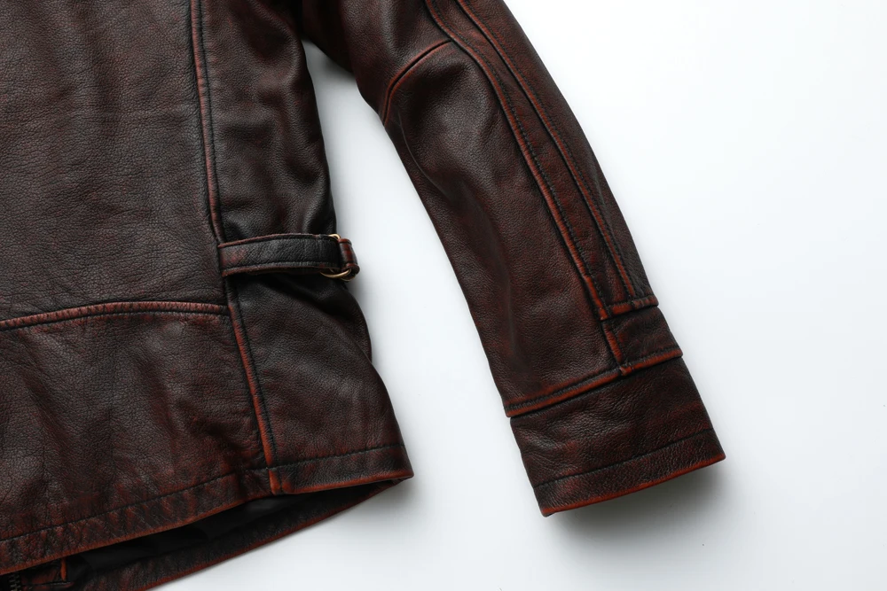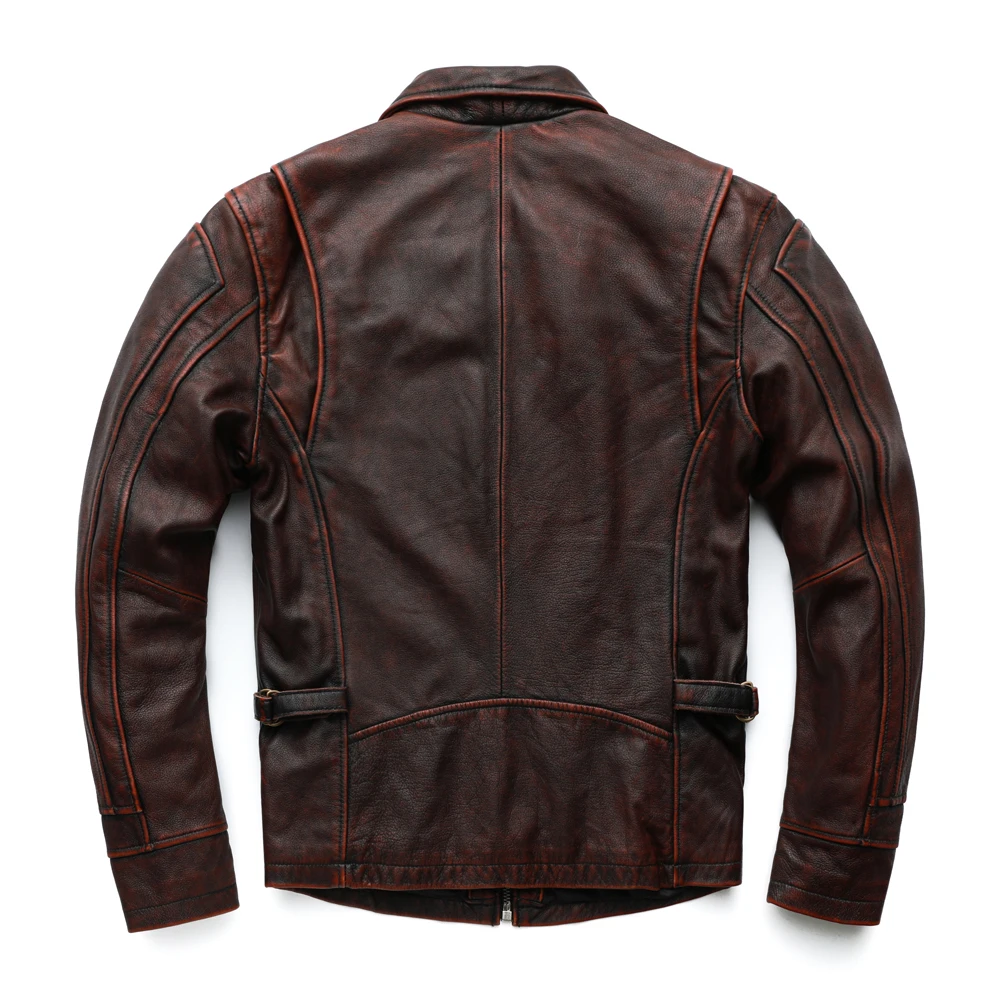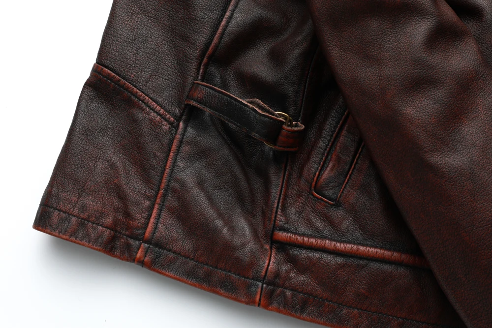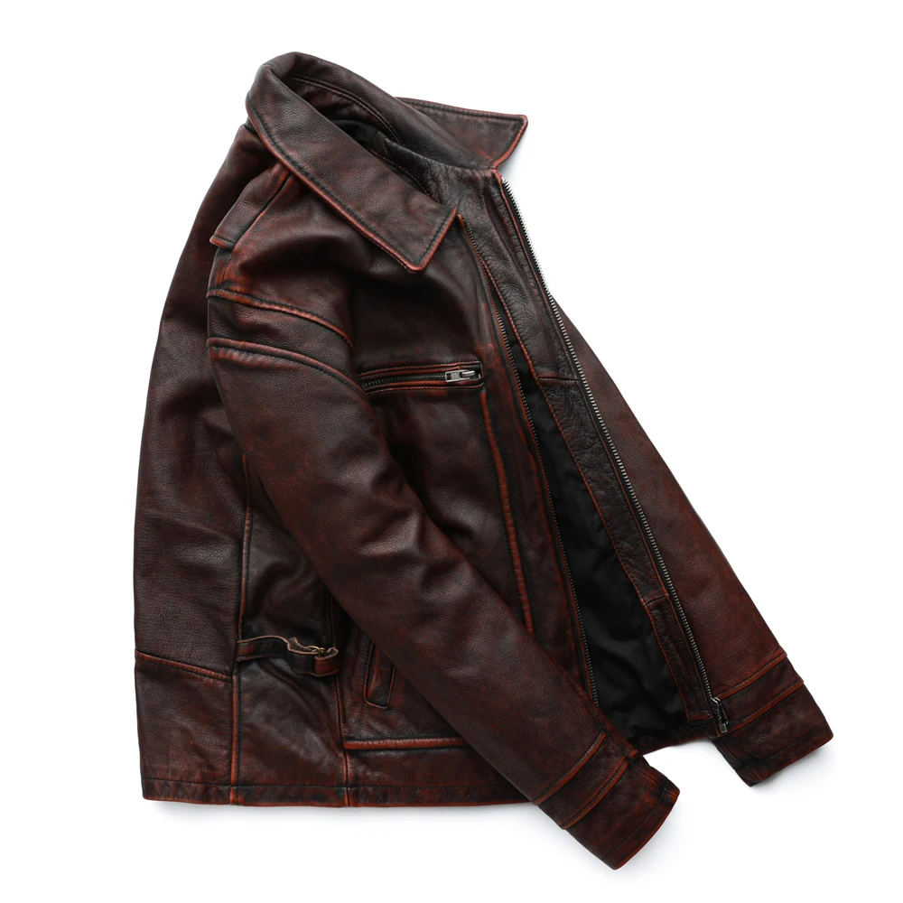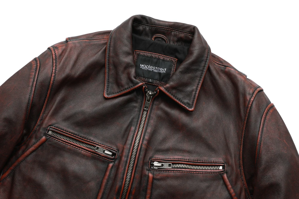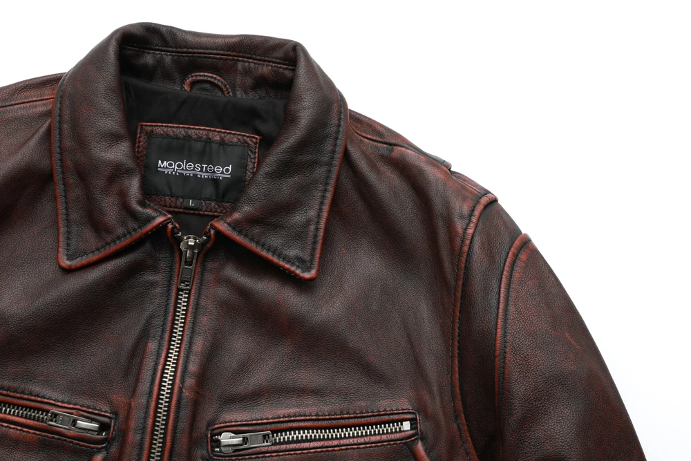 MAPLESTEED Brand Men Leather Jacket Black Red Brown 100% Cowhide Vintage Jackets Men Winter Coat Long Sleeve 62-68cm M-5XL M100