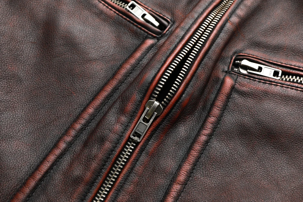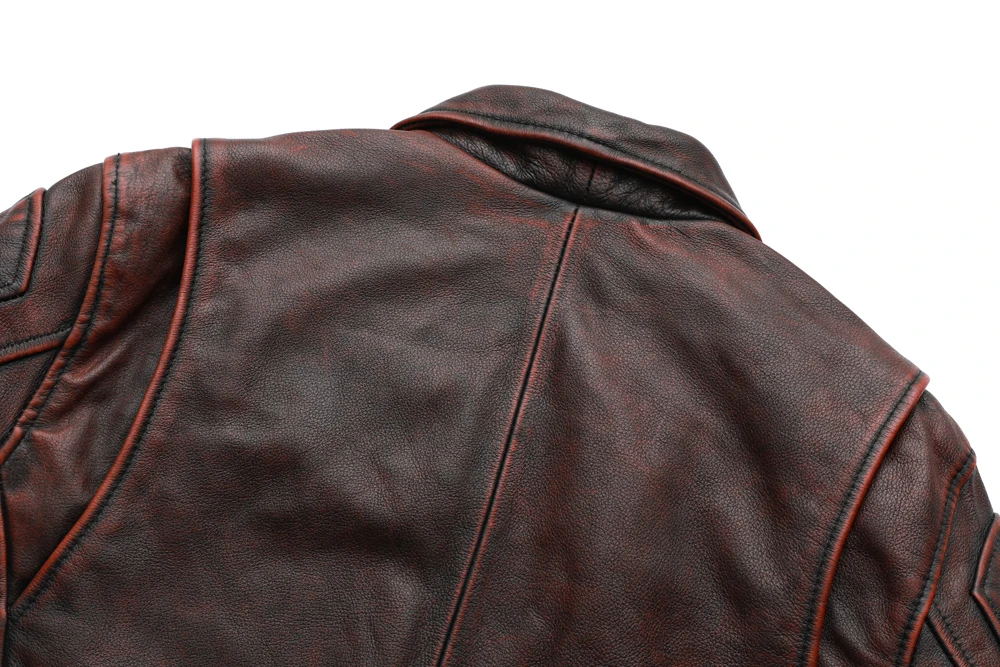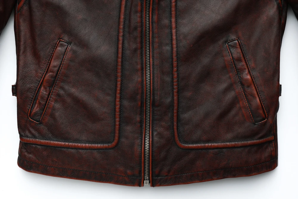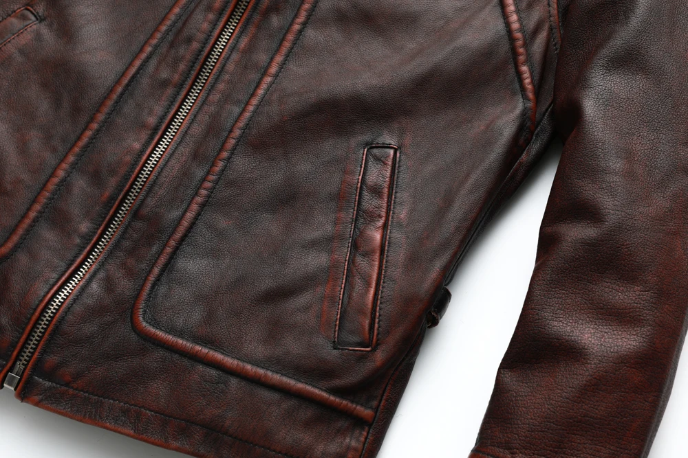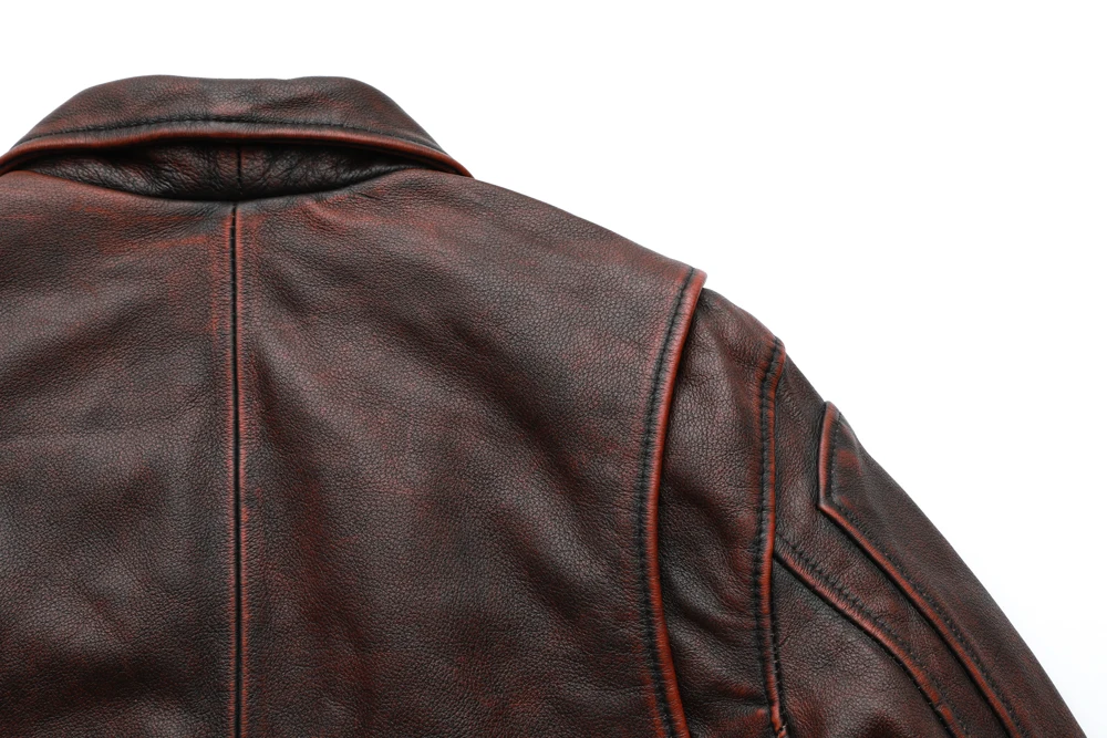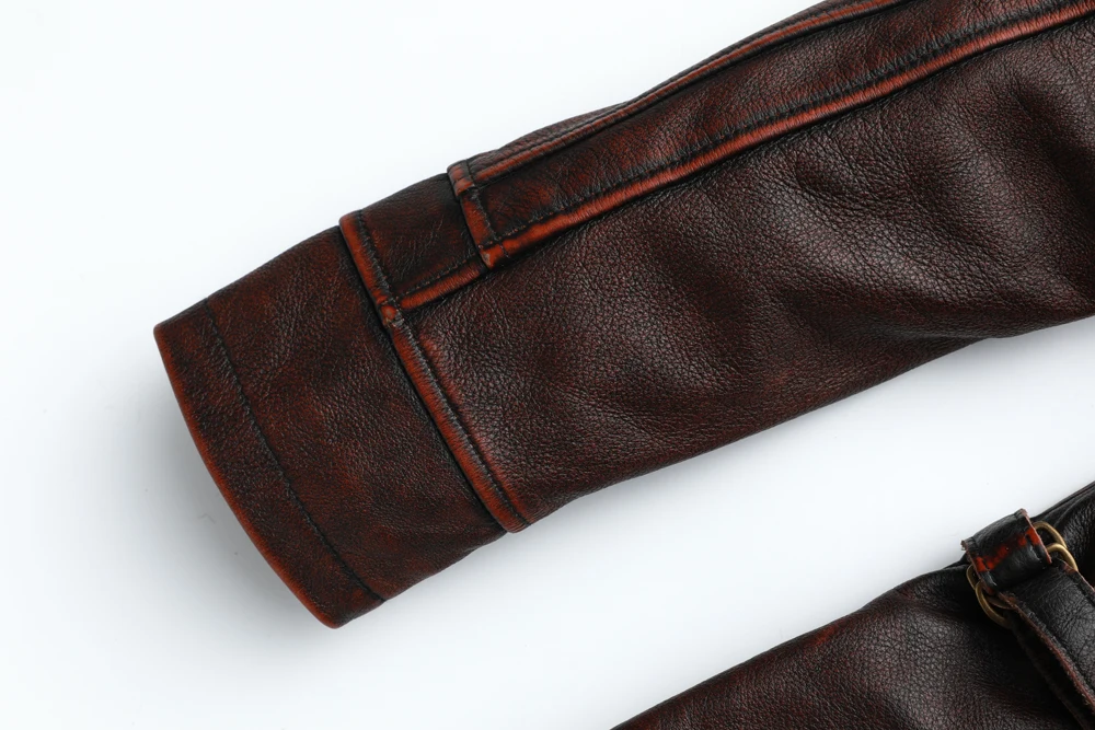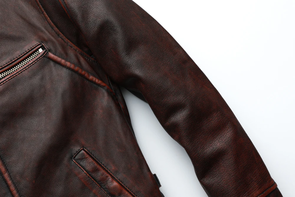 MAPLESTEED Brand Men Leather Jacket Black Red Brown 100% Cowhide Vintage Jackets Men Winter Coat Long Sleeve 62-68cm M-5XL M100