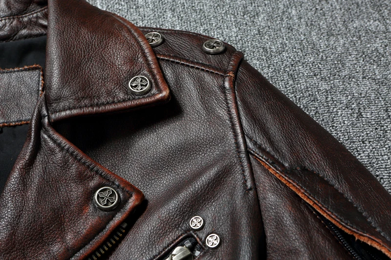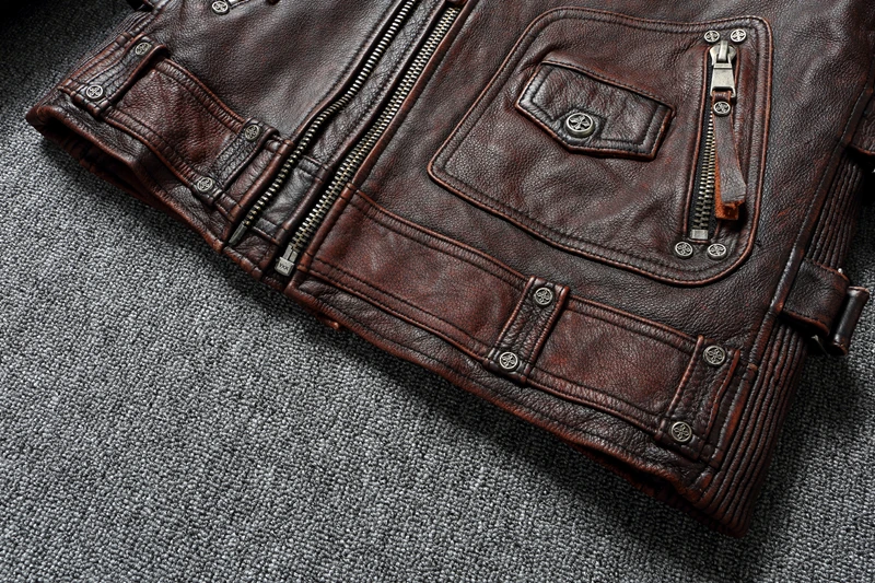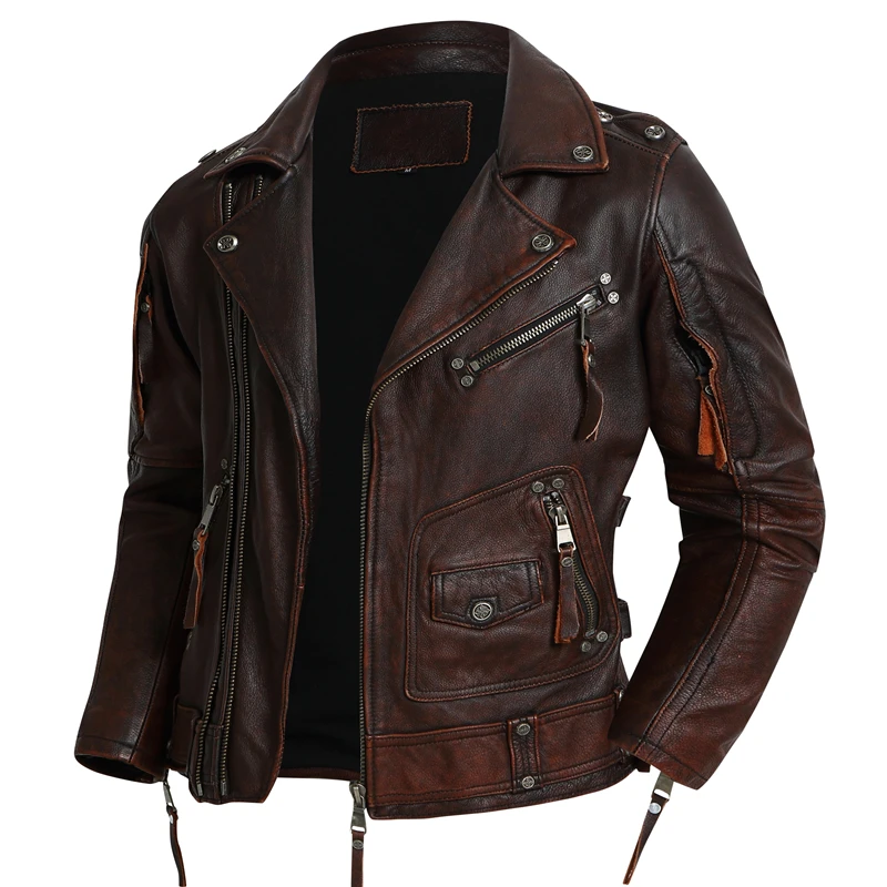 Men Leather Jacket Biker Clothes Genuine Cowhide Jackets Slim Stone Grinding Vintage Motorcycle Coat Chaquetas Moto Hombre