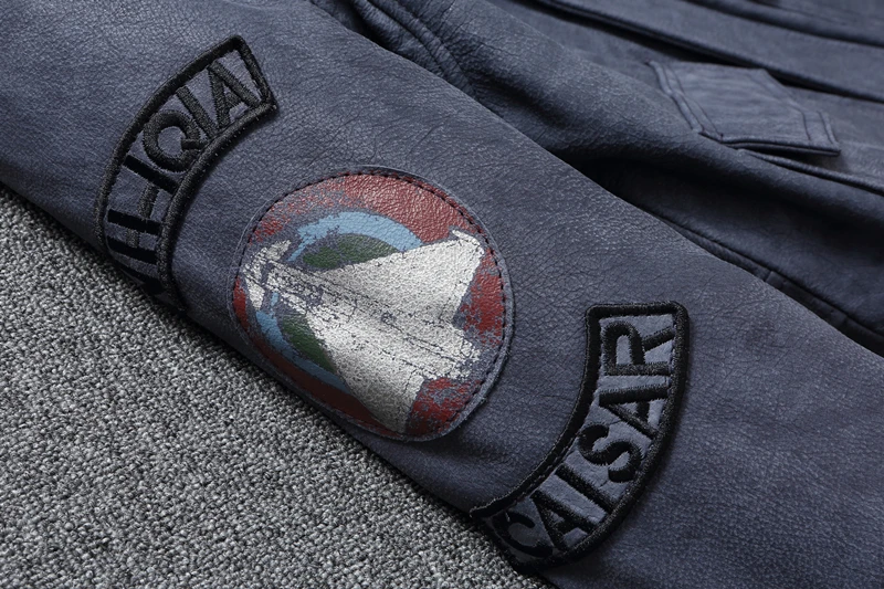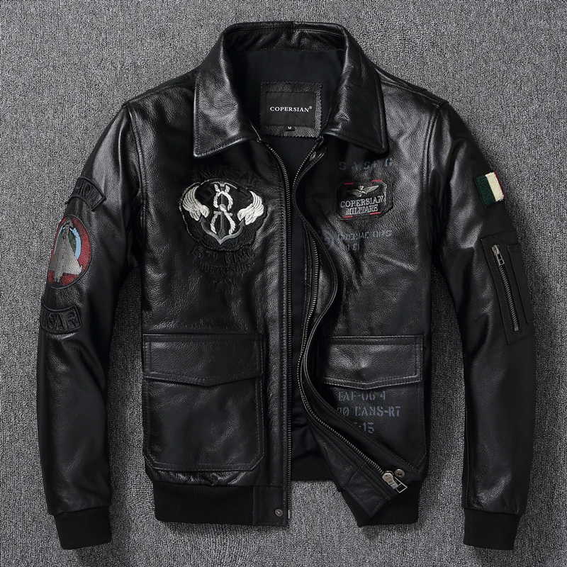 Men Leather Jacket Indian Embroidered Skull Bomber Clothes Aviator Military A2 Flight Jackets Top Layer Cow Leather Coat Autumn