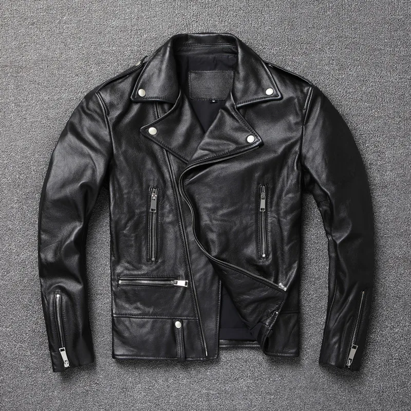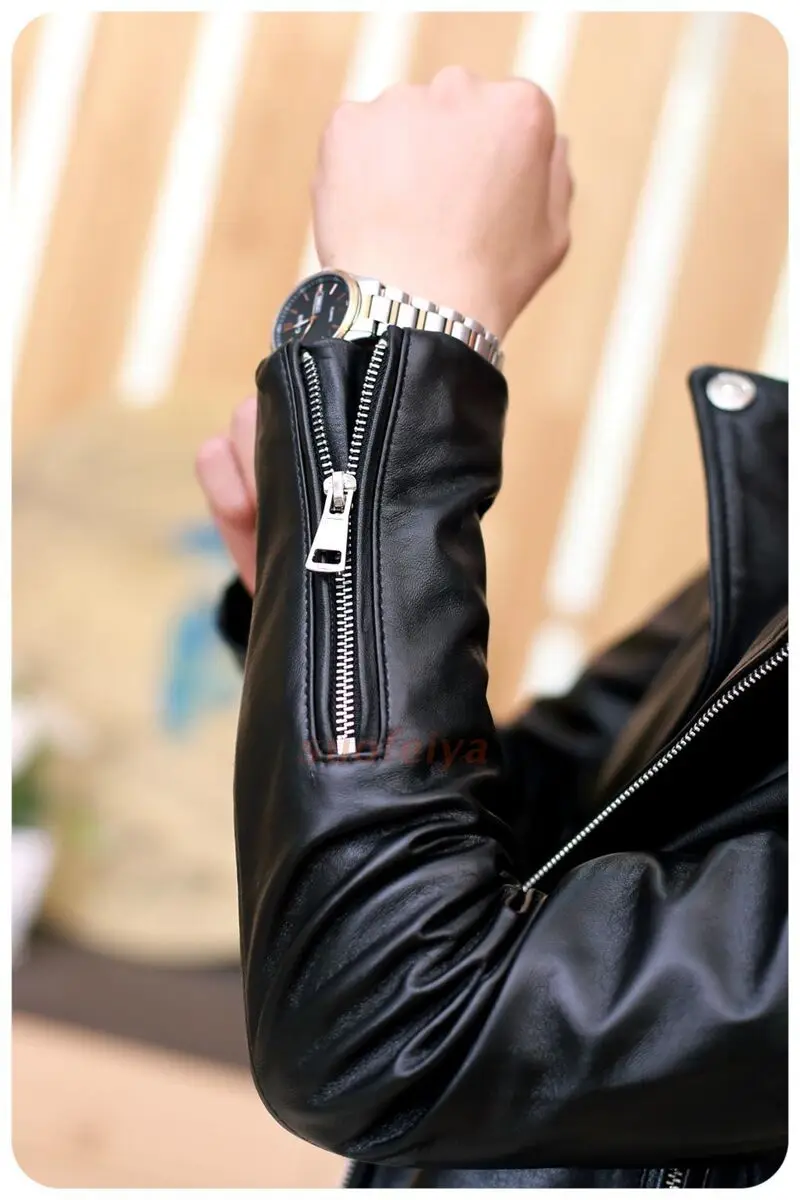 Mens Leather Jacket Soft Sheepskin Cow Leather Jacktes for Men Motorcycle Style Biker Coat Autumn Chaqueta De Cuero Para Hombre