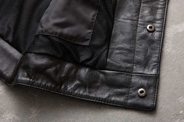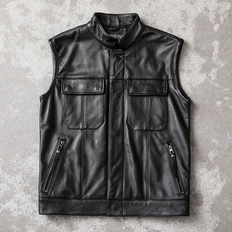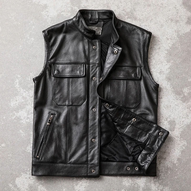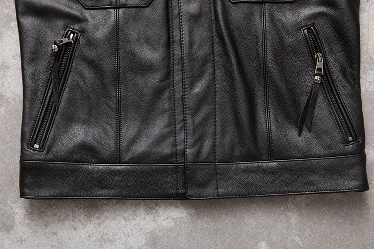 Motorcycle Biker Leather Vest Men Genuine Cow Leather Sleeveless Jackets 100% REAL Cowhide Stand Collar Waistcoat Outwear