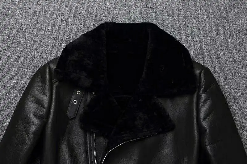 Natural Sheep Fur Jackets Men Shearling Real Leather Jacket Lapel Oblique Zipper Belt Biker Jackets Winter Coat Warm