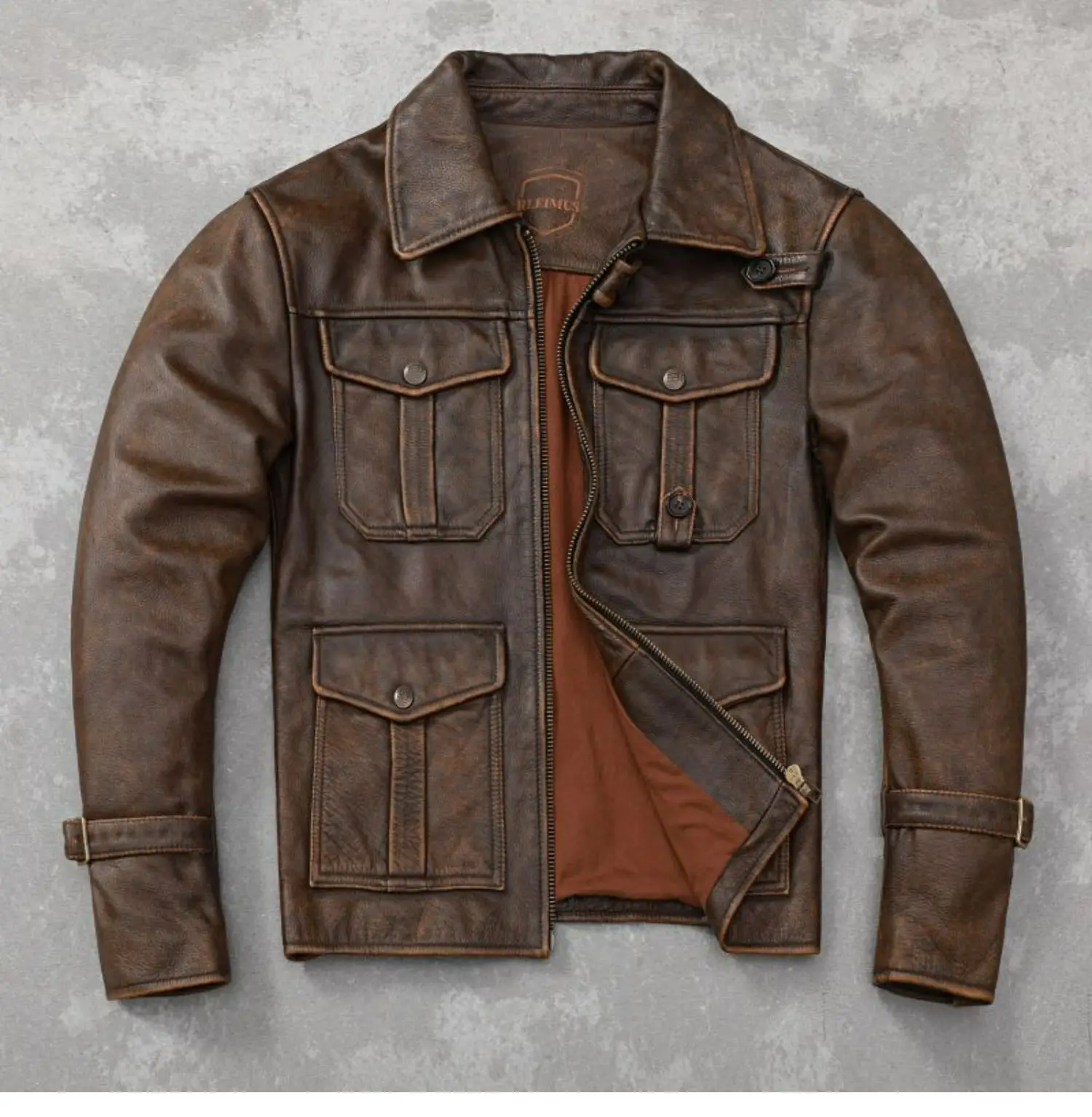 New Fashion Mens Leather Jacket Slim Retro Stone Milled Vintage Cowhide Leather Jacket Men Coats Autumn Clothes 가죽점퍼 Мотоцикл
