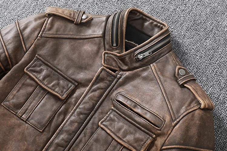 New Men Cowhide Coat Male Genuine Leather Jacket Vintage Style Man Motorcycle Biker Clothes Thick Calfskin Real Learher Coats