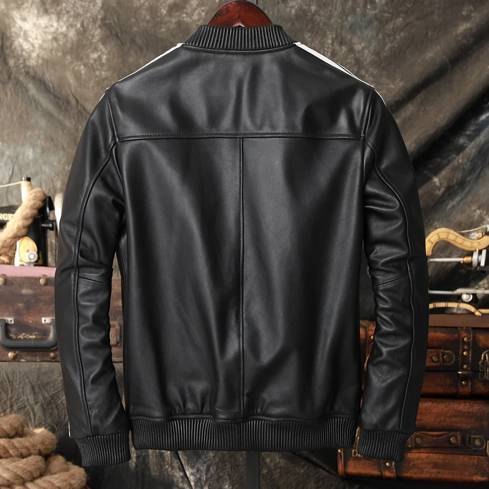 New Men's Leather Jacket Sheepskin Cowhide Baseball Jacket Natural Genuine Leather Coat Soft Men Leather Jacket Spring Autumn