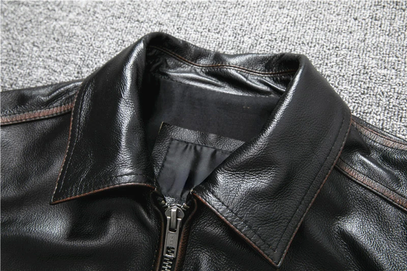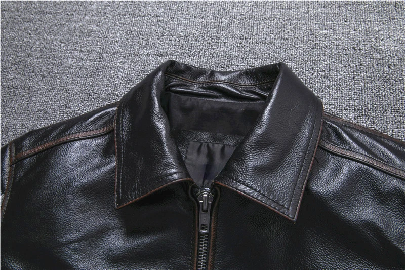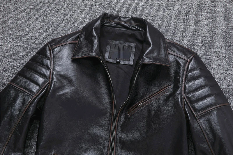 New Style Edging Brown Vintage Genuine Leather Jacket Men Cowhide Slim Fashion Biker Jackets Clothing Big Size S-5XL