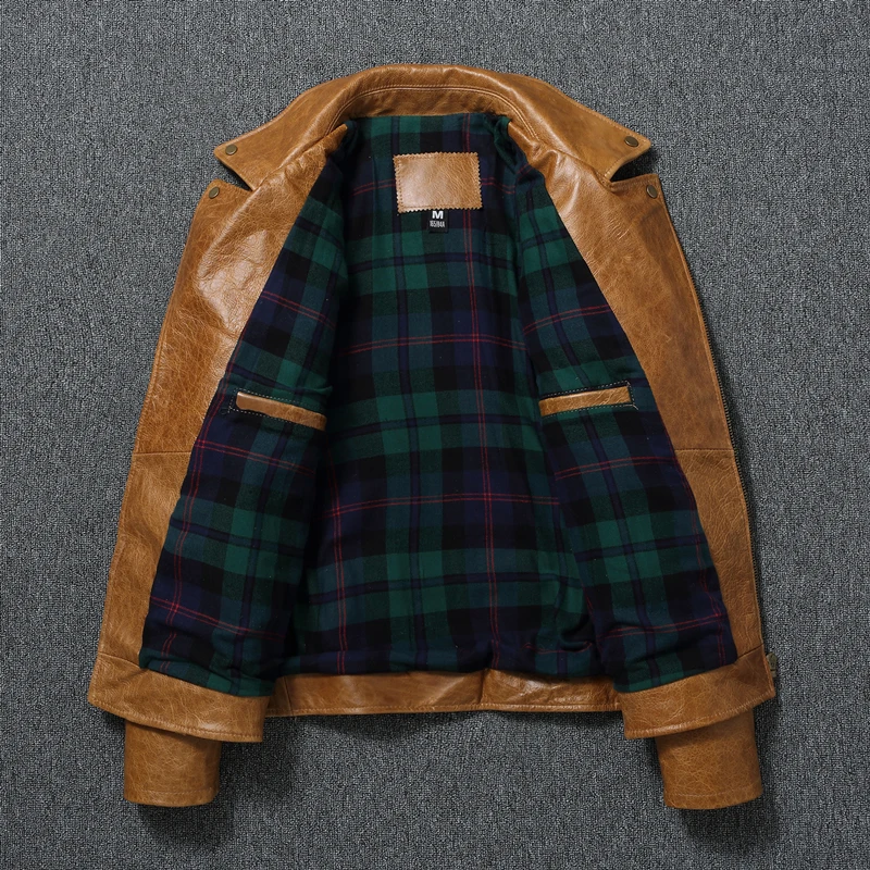 Oil Waxed Genuine Cow Leather Jacket for Men Cowhide Motorcycle Biker Jackets Jaquetas Masculina De Couro мужские зимние куртки