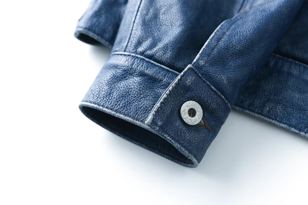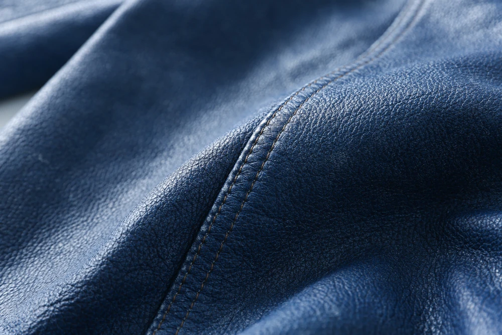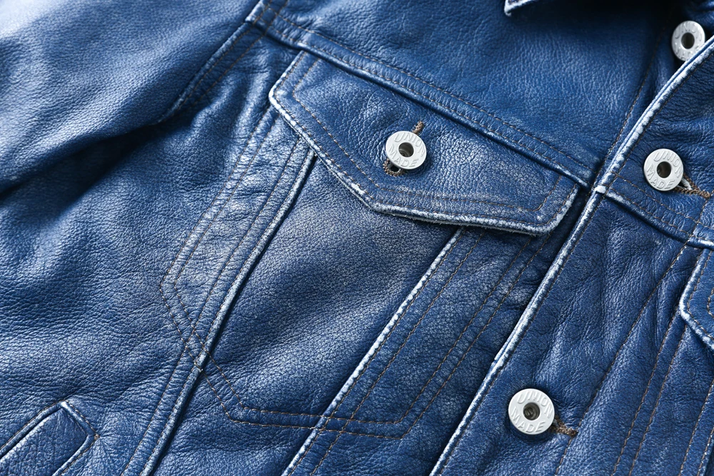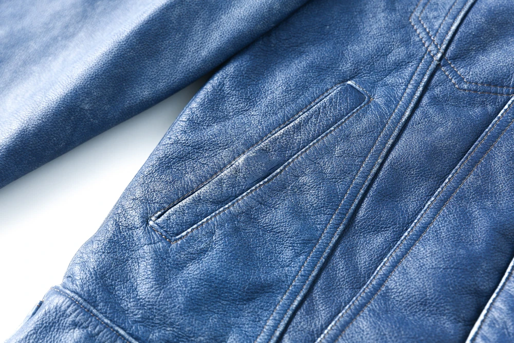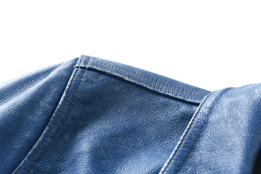 Vintage Blue Men Leather Jacket Slim Fashion 100% Natural Cowhide Jackets Man Genuine Leather Coat Autumn Spring Asian Size M234