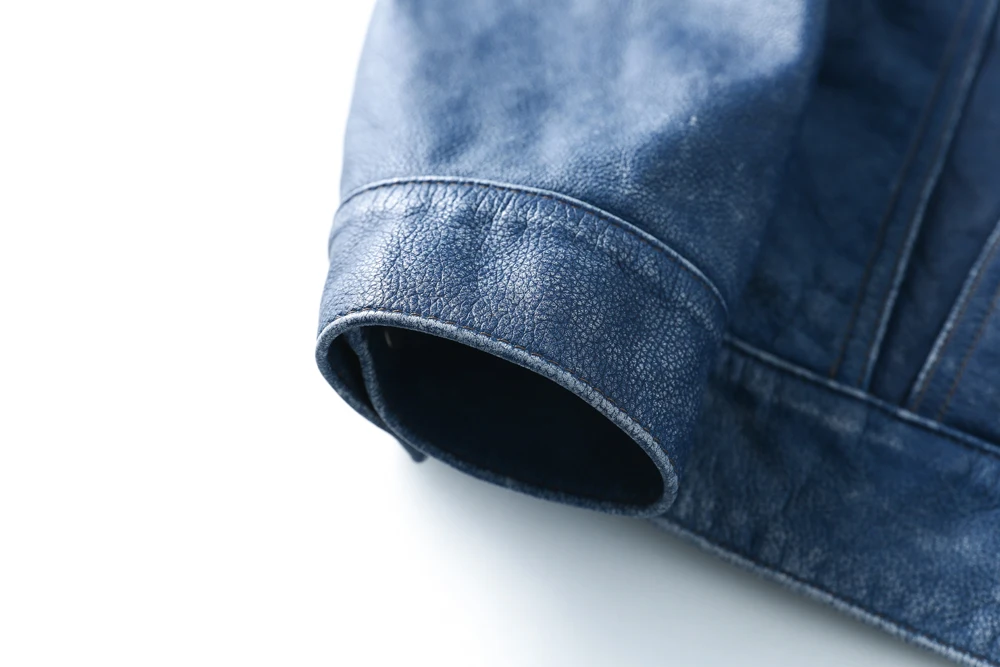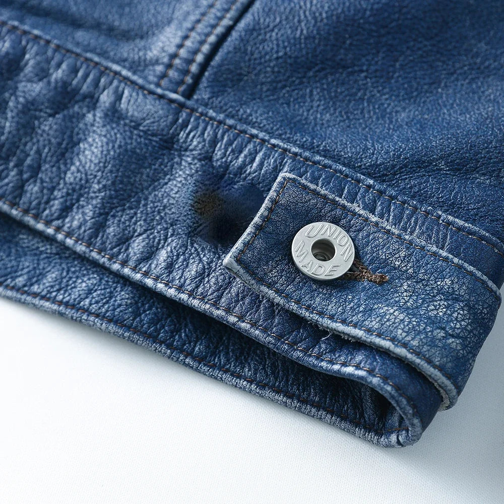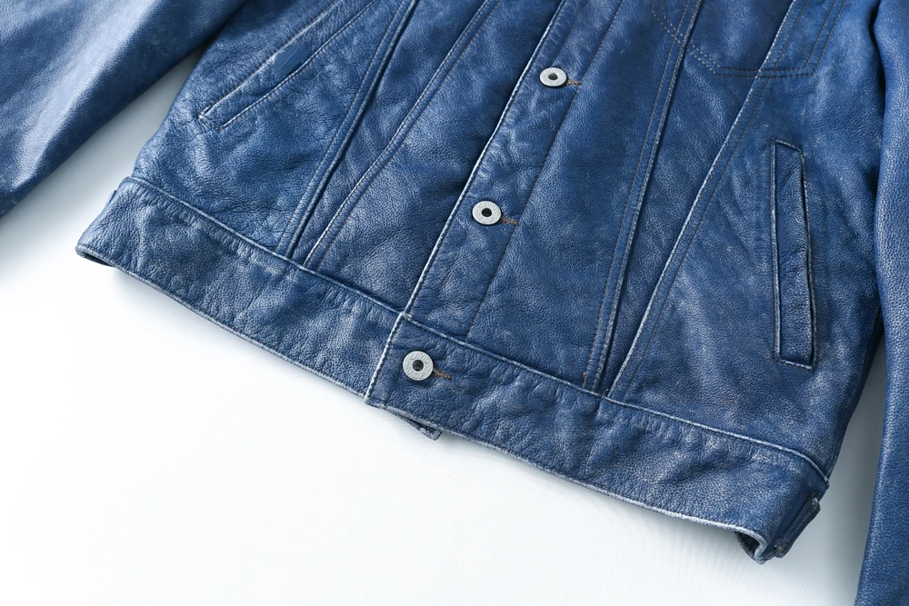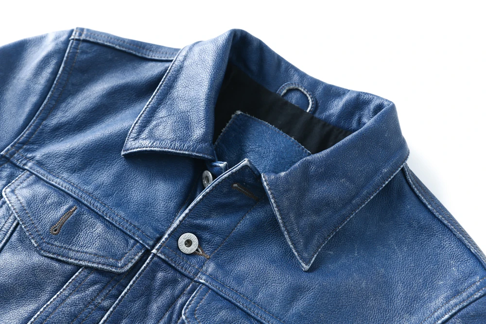 Vintage Blue Men Leather Jacket Slim Fashion 100% Natural Cowhide Jackets Man Genuine Leather Coat Autumn Spring Asian Size M234