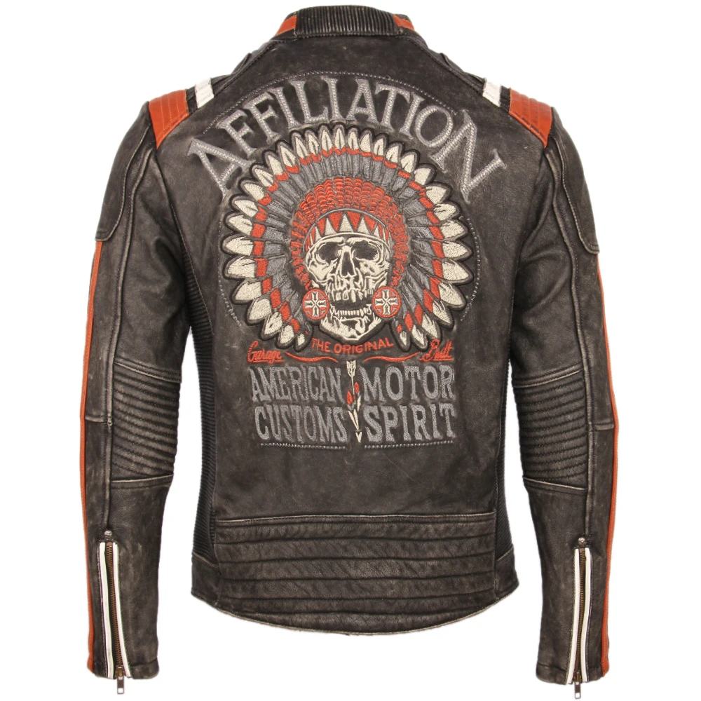 Vintage Embroidery Skulls Motorcycle Leather Jacket 100% Real Cowhide Moto Jacket Biker Leather Coat Winter Motor Clothing M220