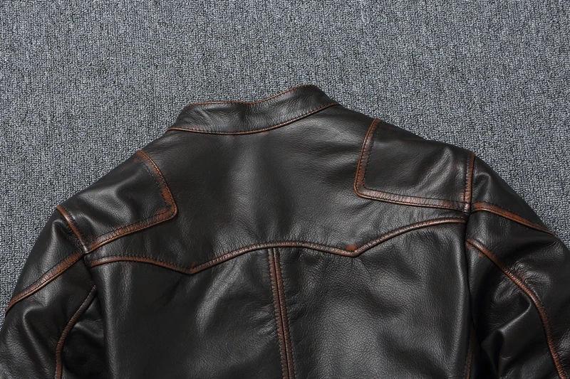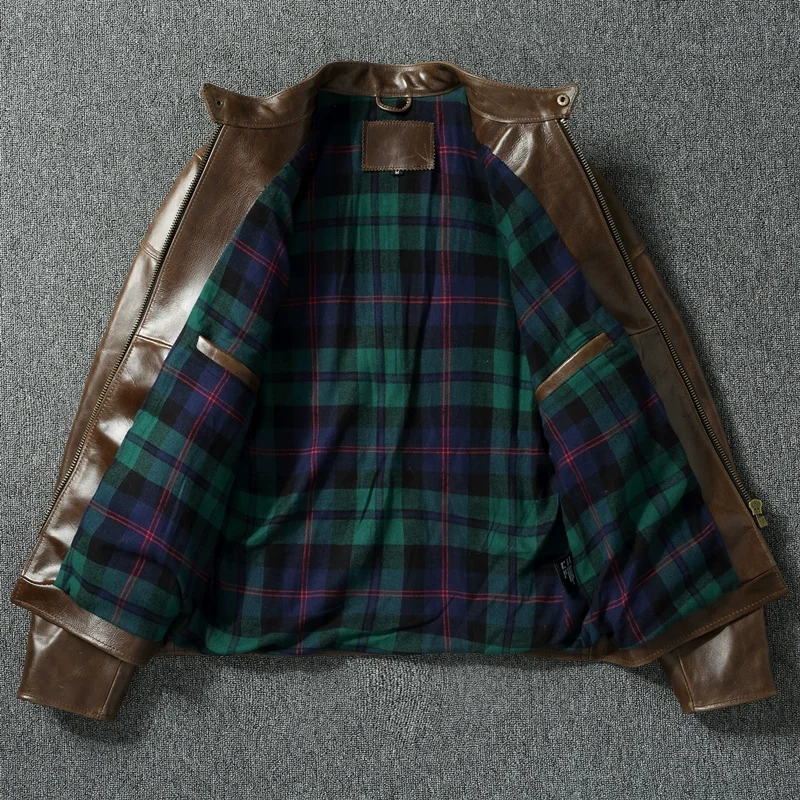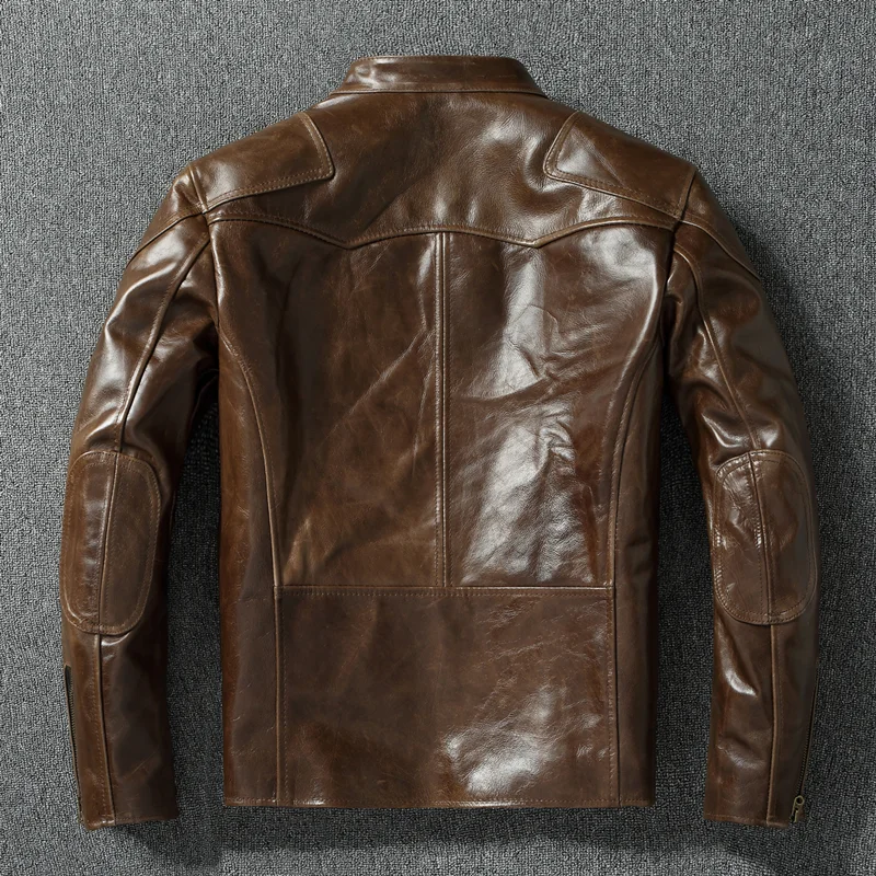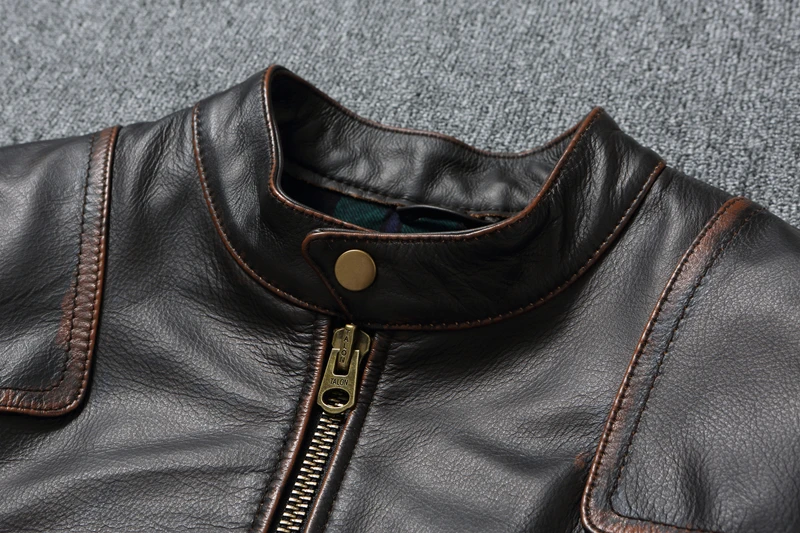 Vintage Genuine Cowhide Leather Jacket for Men Retro Motorcycle Jackets Standing Collar Genuine Leather Jacket Men