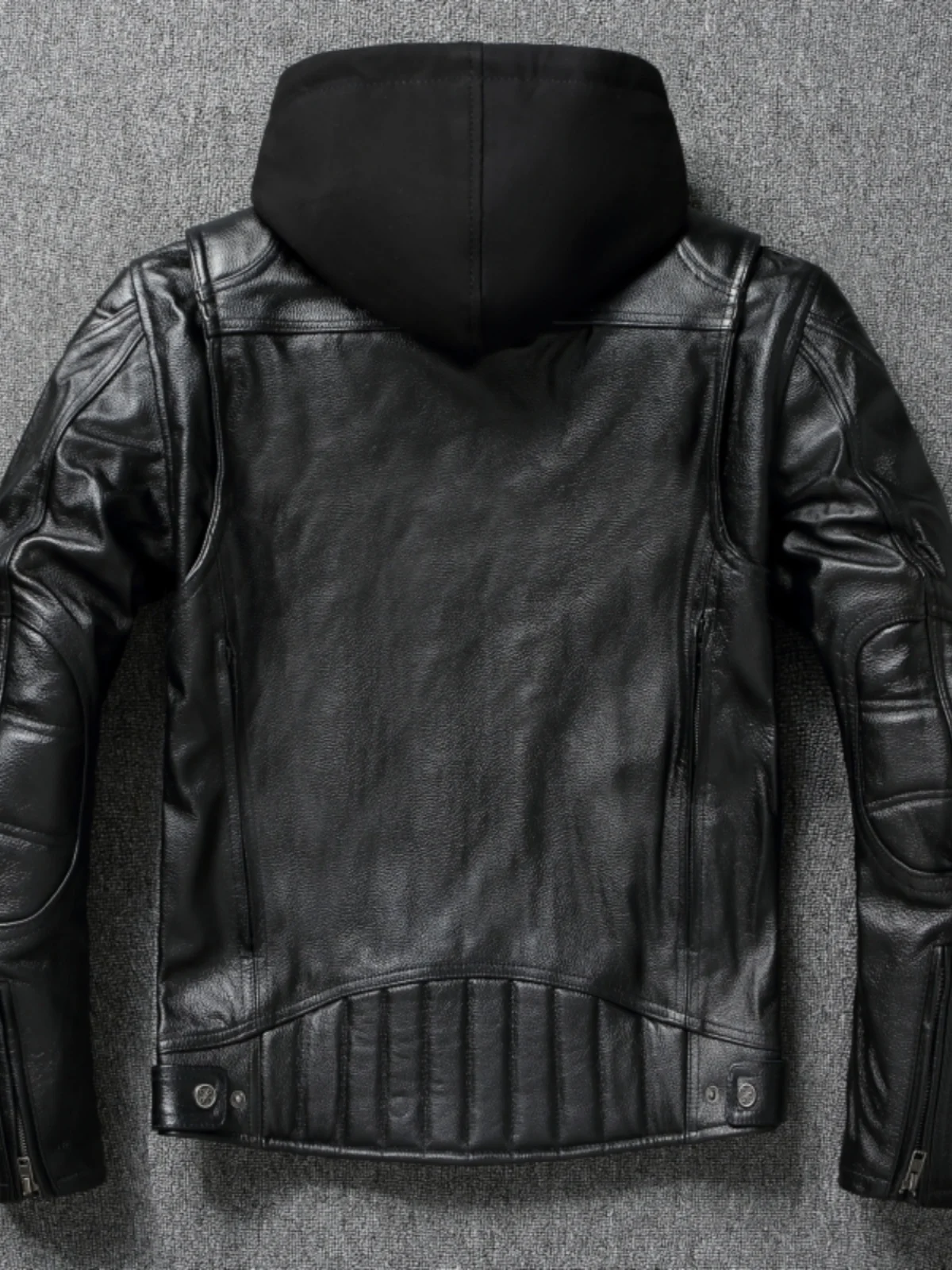 Heavy Motorcycle Jackets Club Biker Coat Real Cowhide Leather Jacket Men Removable Hooded Riding Clothing Men Leather Jacket