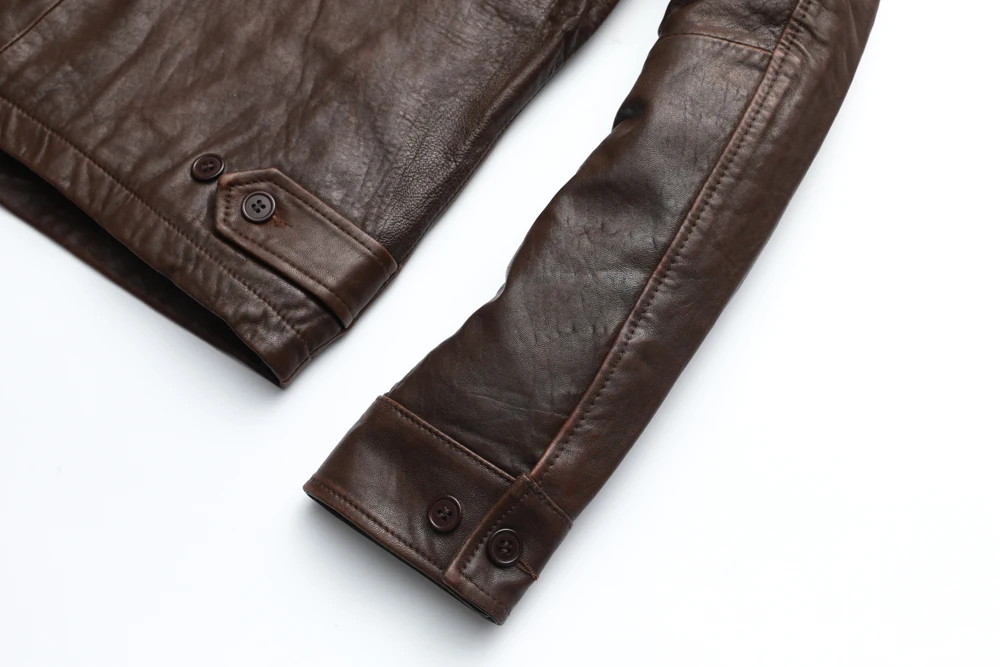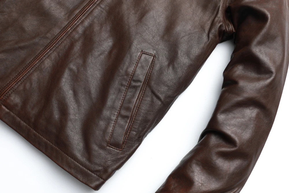 This jacket is clearance. It is 100% natural leather. Please check the pictures before buying.