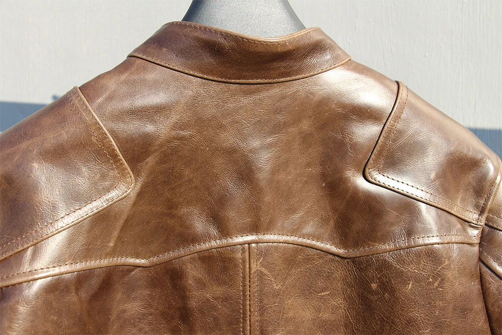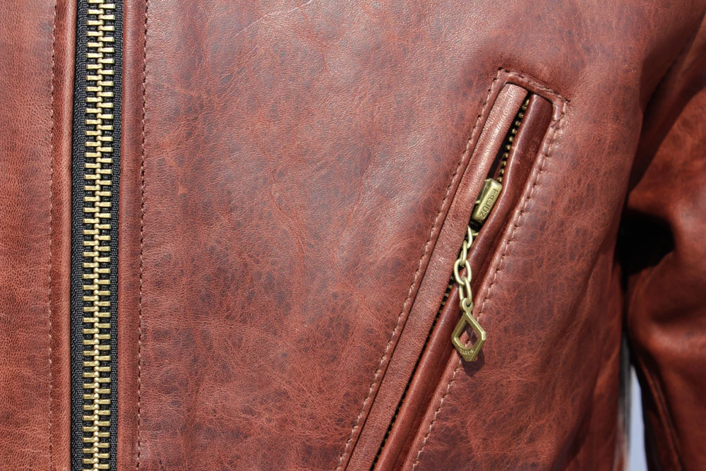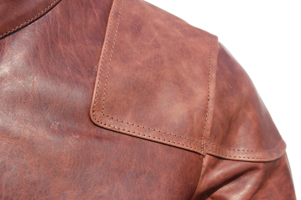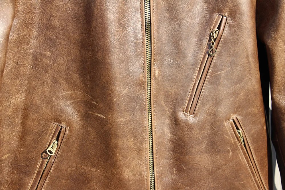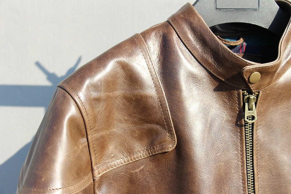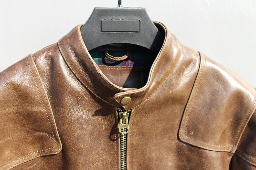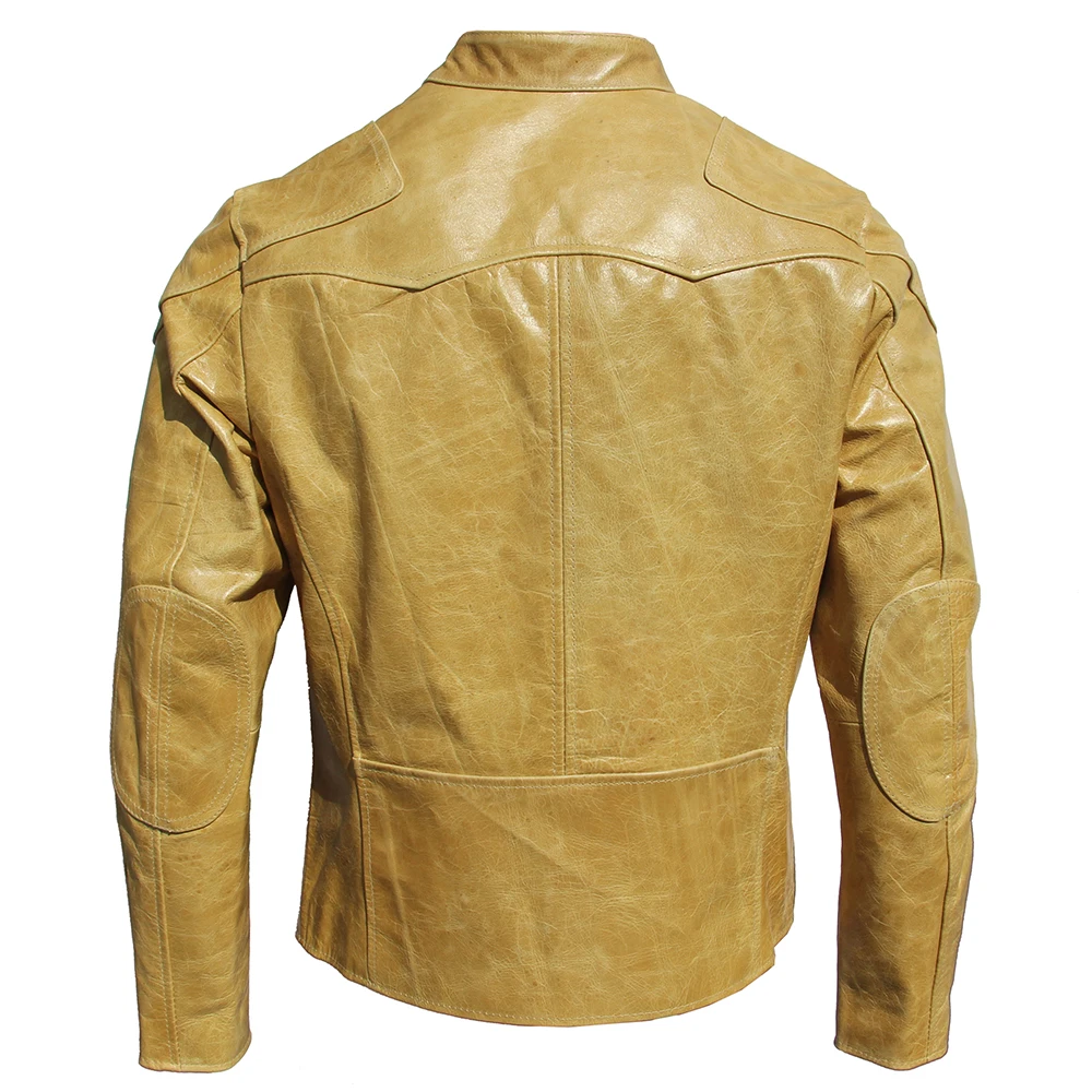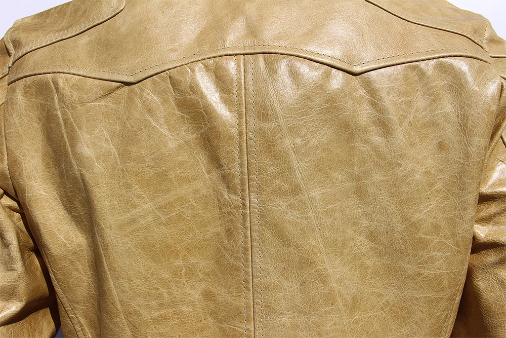 Fashion Natural Horsehide Leather Jacket Men Oil Waxed Cowhide Genuine Leather Coat Slim Male Clothes Autumn Chest 128cm M002