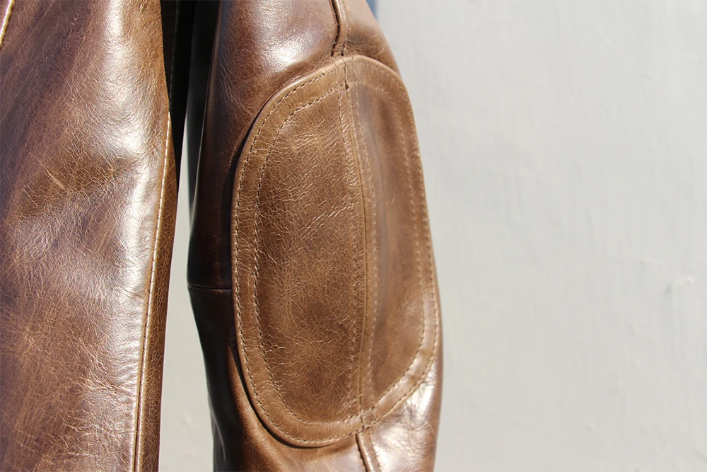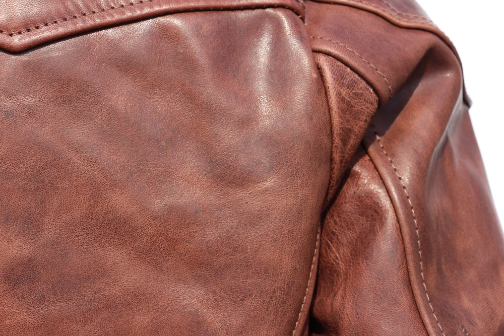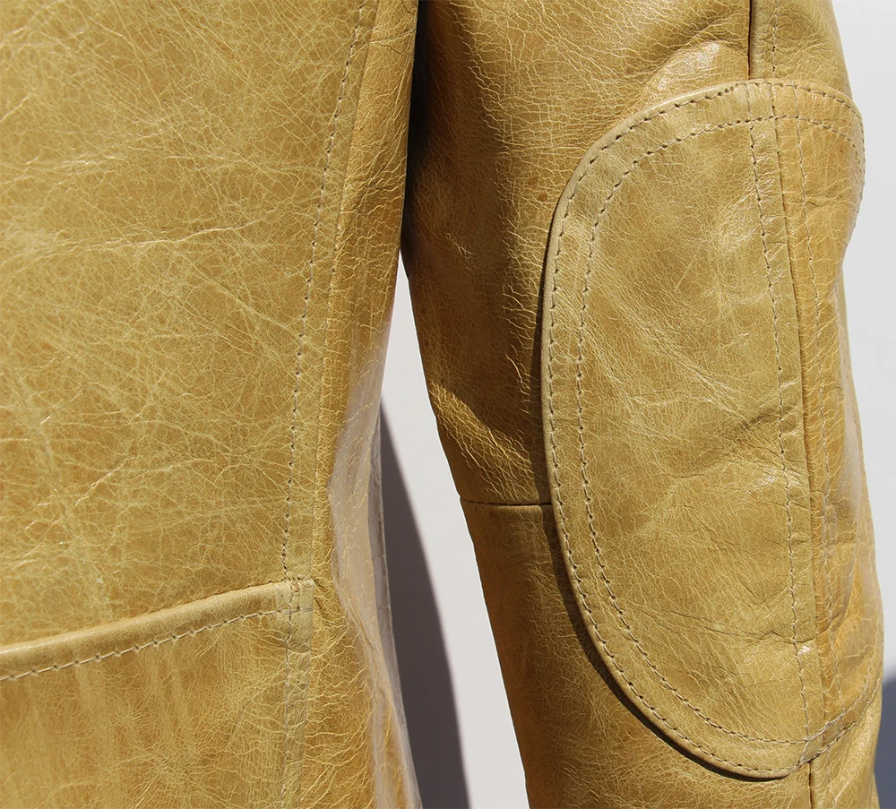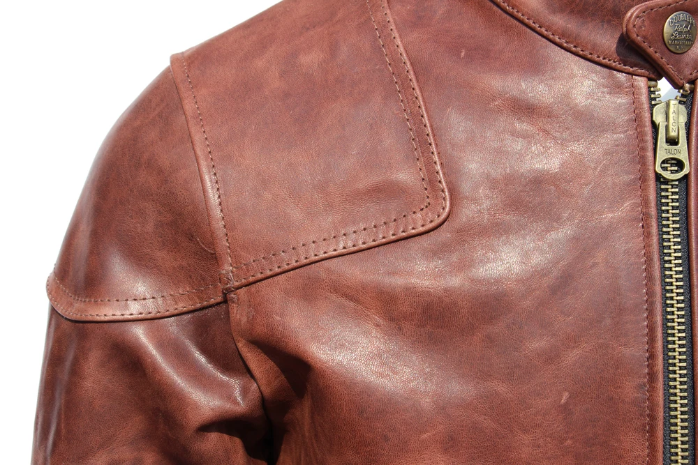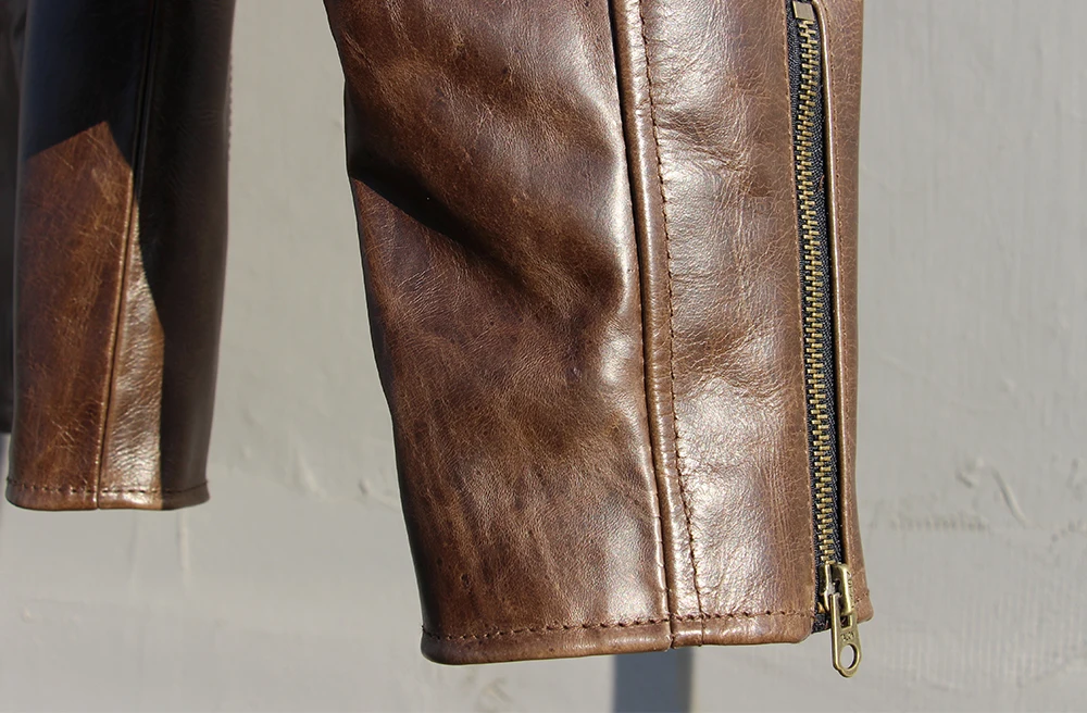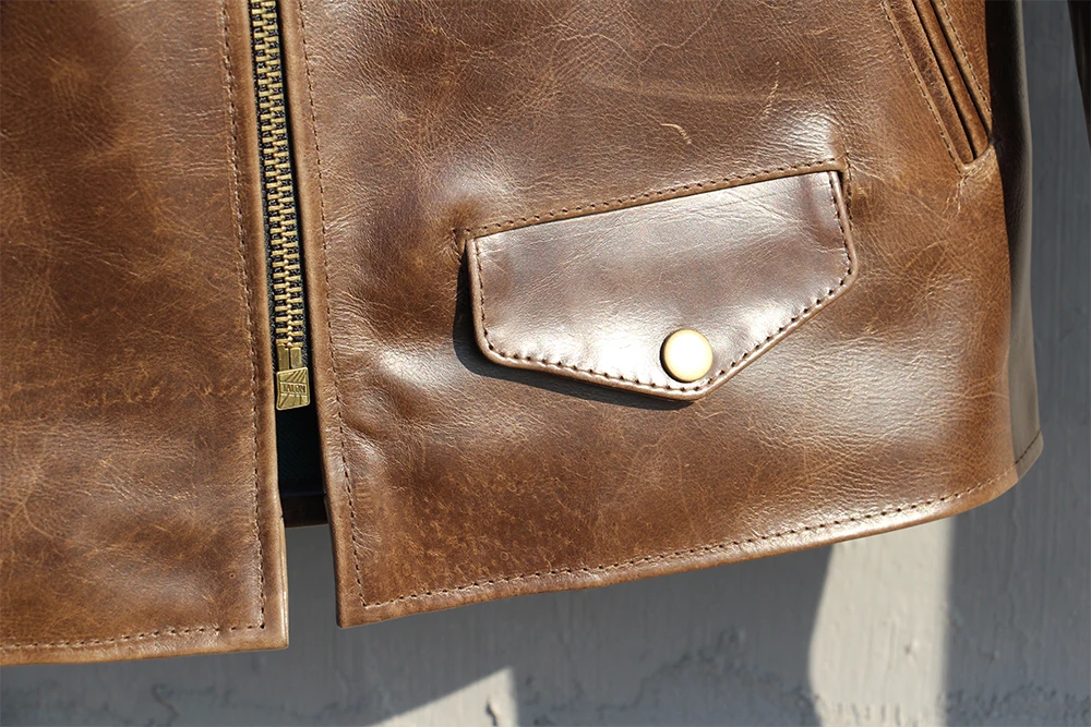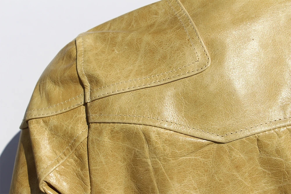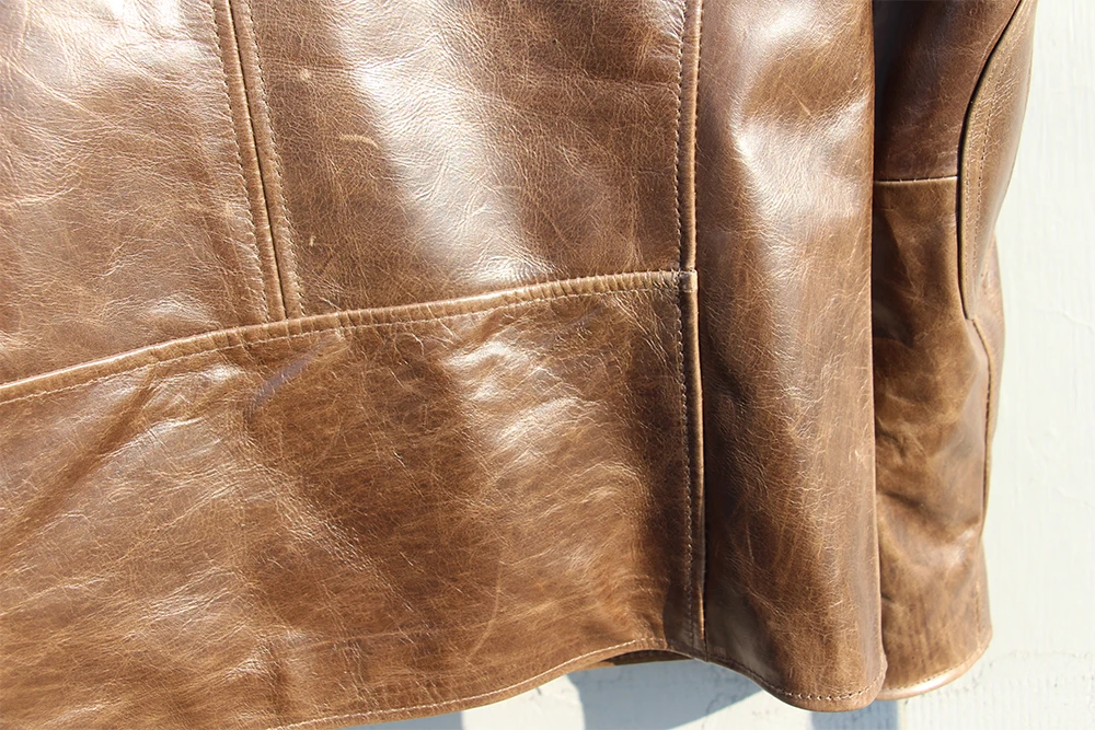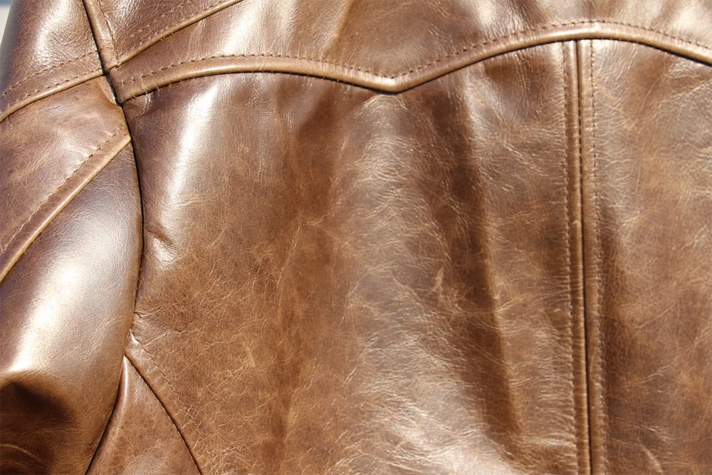 Fashion Natural Horsehide Leather Jacket Men Oil Waxed Cowhide Genuine Leather Coat Slim Male Clothes Autumn Chest 128cm M002