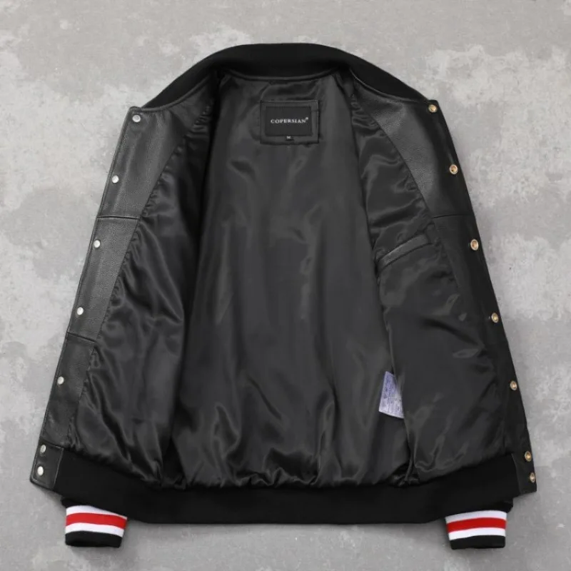 Fashion Terrycloth Embroidery Genuine Leather Baseball Jacket White Black American Style Sport Coat Loose Street Mens Jacket