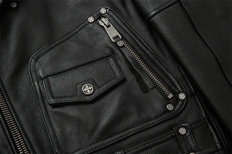 Motorcycle Leather Jacket Men Moto Riding Leather Jacket Mens Clothing Biker Coat Genuine Natural Calfskin Clothes Mens Jackets