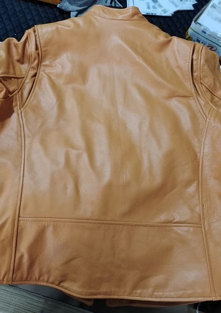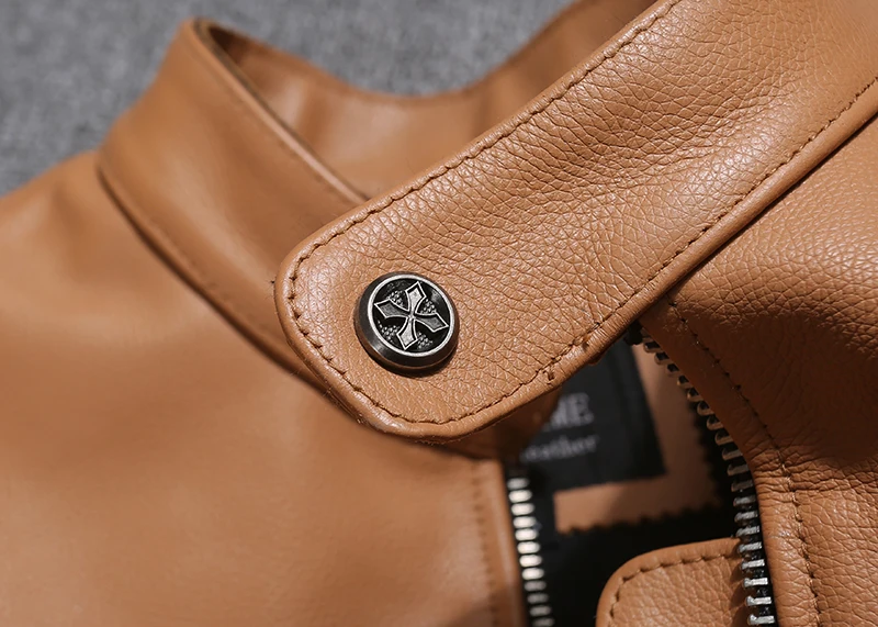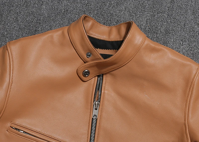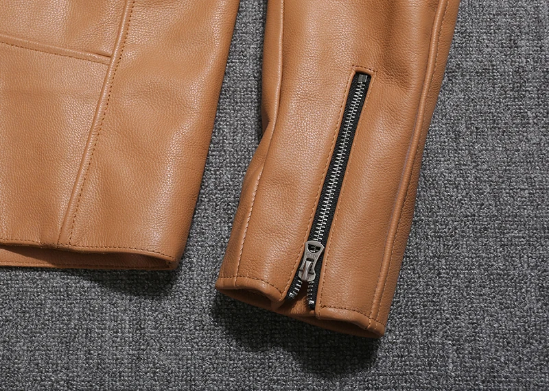 Slim Fit Mens Leather Jackets Light Yellow Real Cowhide Genuine Leather Jacket Men Autumn Jackets Male Skin Coats