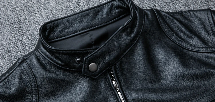 Spring Motorcycle Genuine Leather Jacket Men Cowhide Slim Short Coat Motor Biker Racer Natural Calf Skin Clothes Size S-5XL