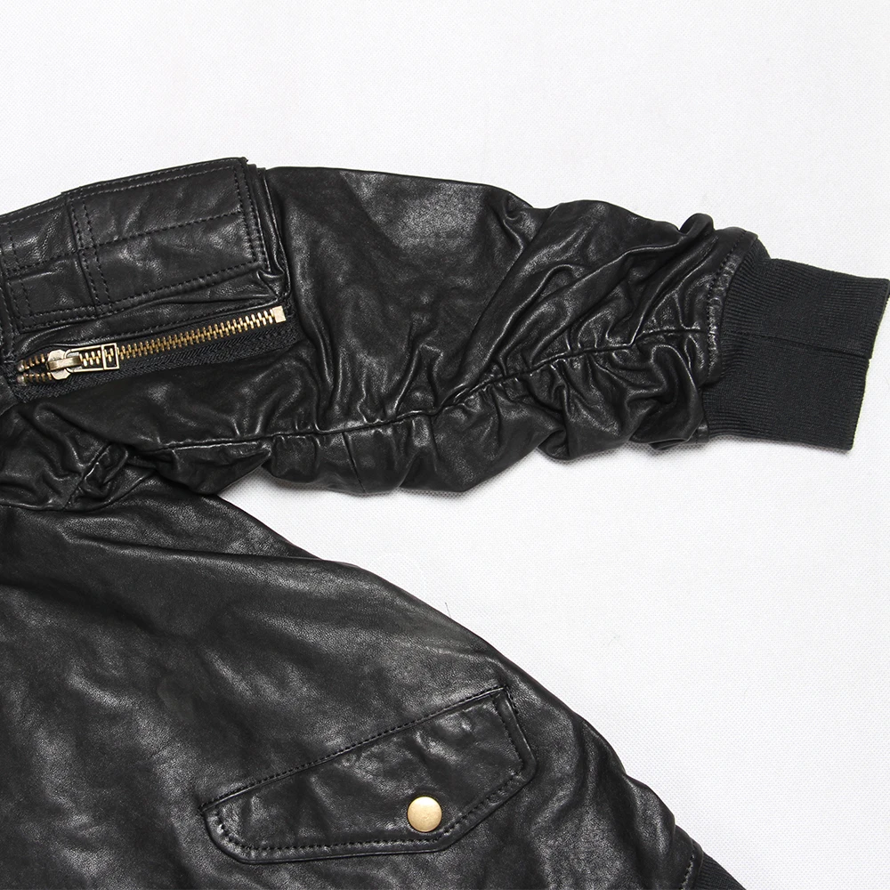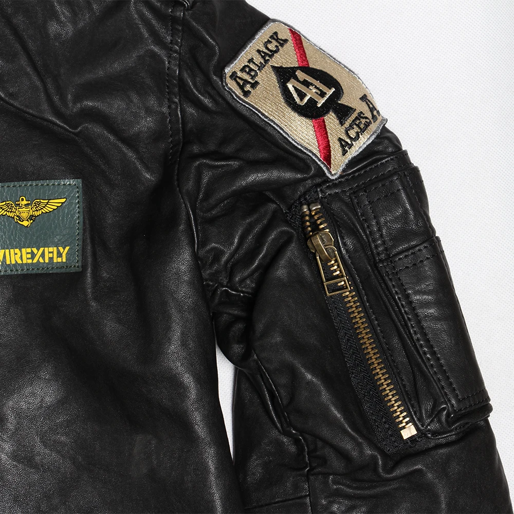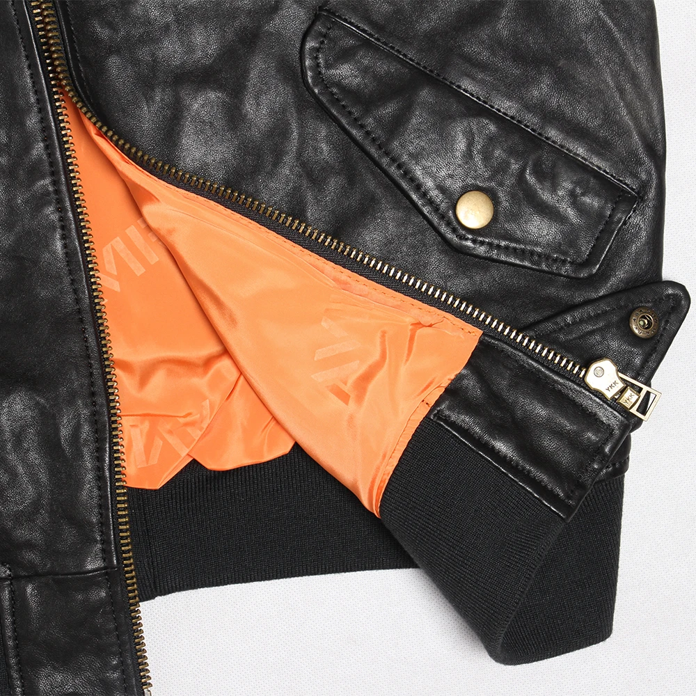 Aviator Bomber Leather Jacket Men's Leather Jackets Black Wine Red Vegetable Tanned Goat Skin Fighting Pilot Coat M096