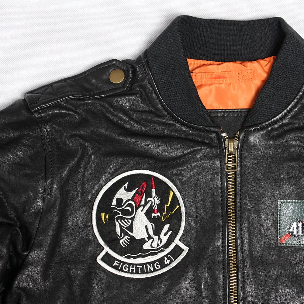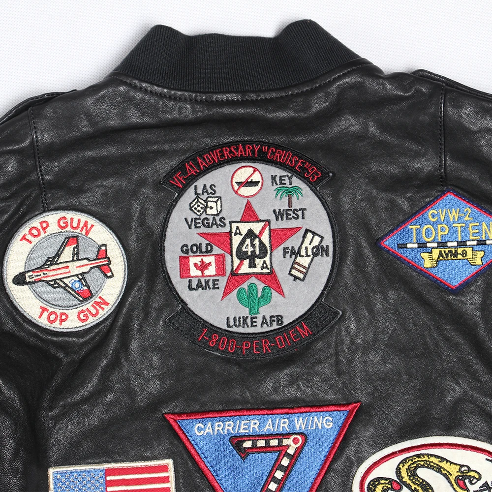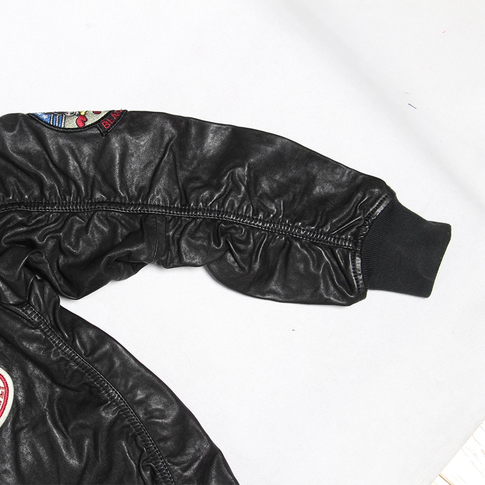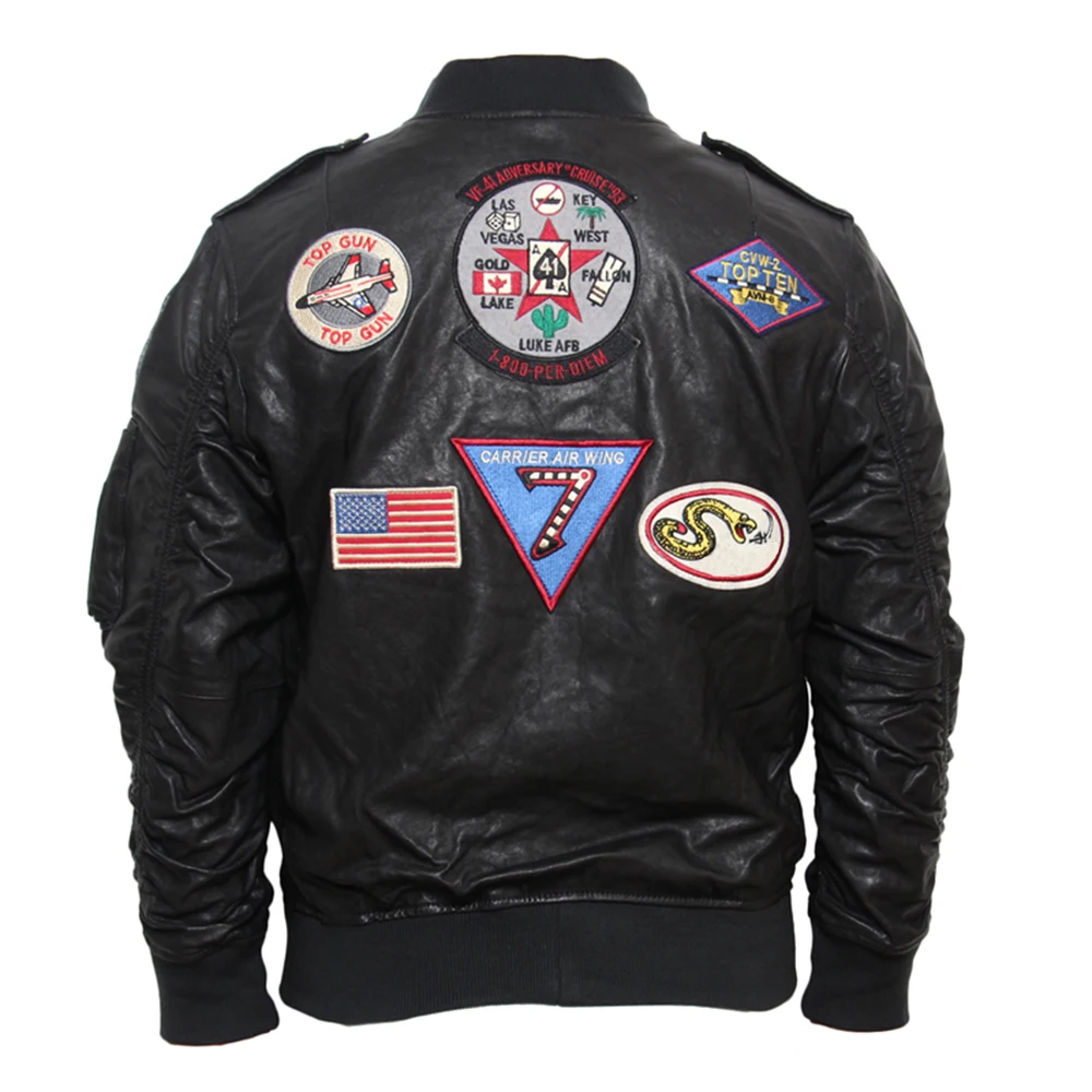 Aviator Bomber Leather Jacket Men's Leather Jackets Black Wine Red Vegetable Tanned Goat Skin Fighting Pilot Coat M096