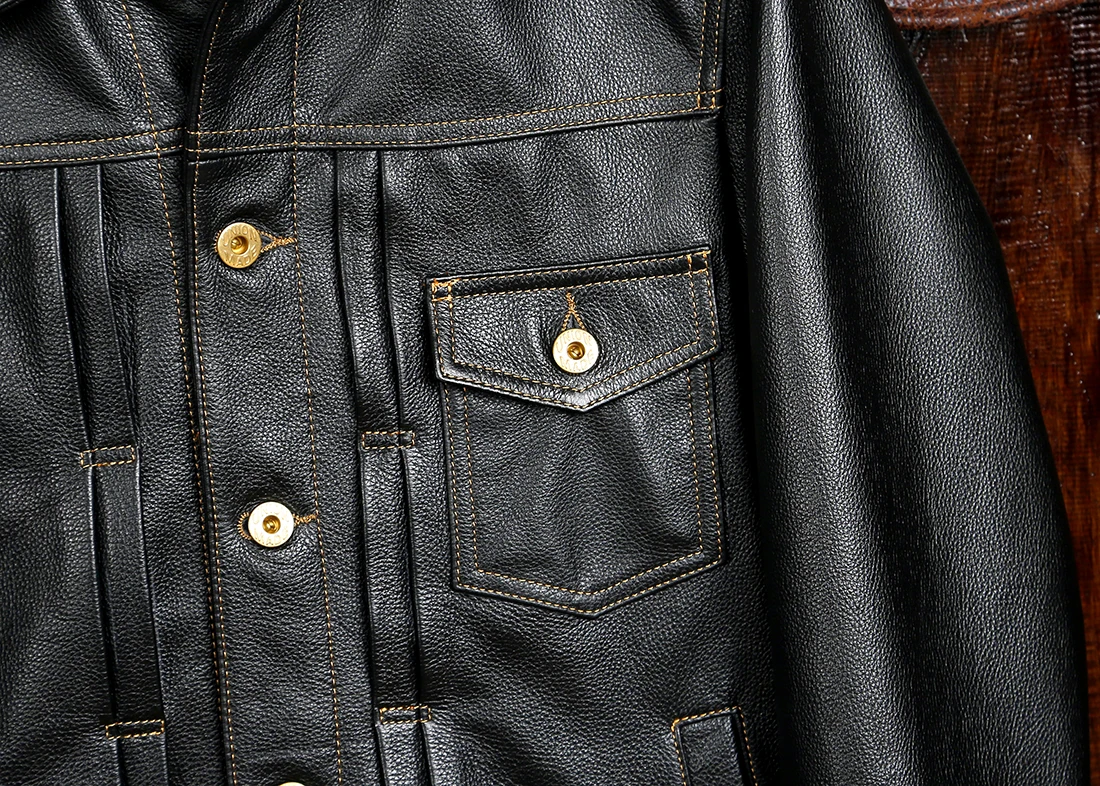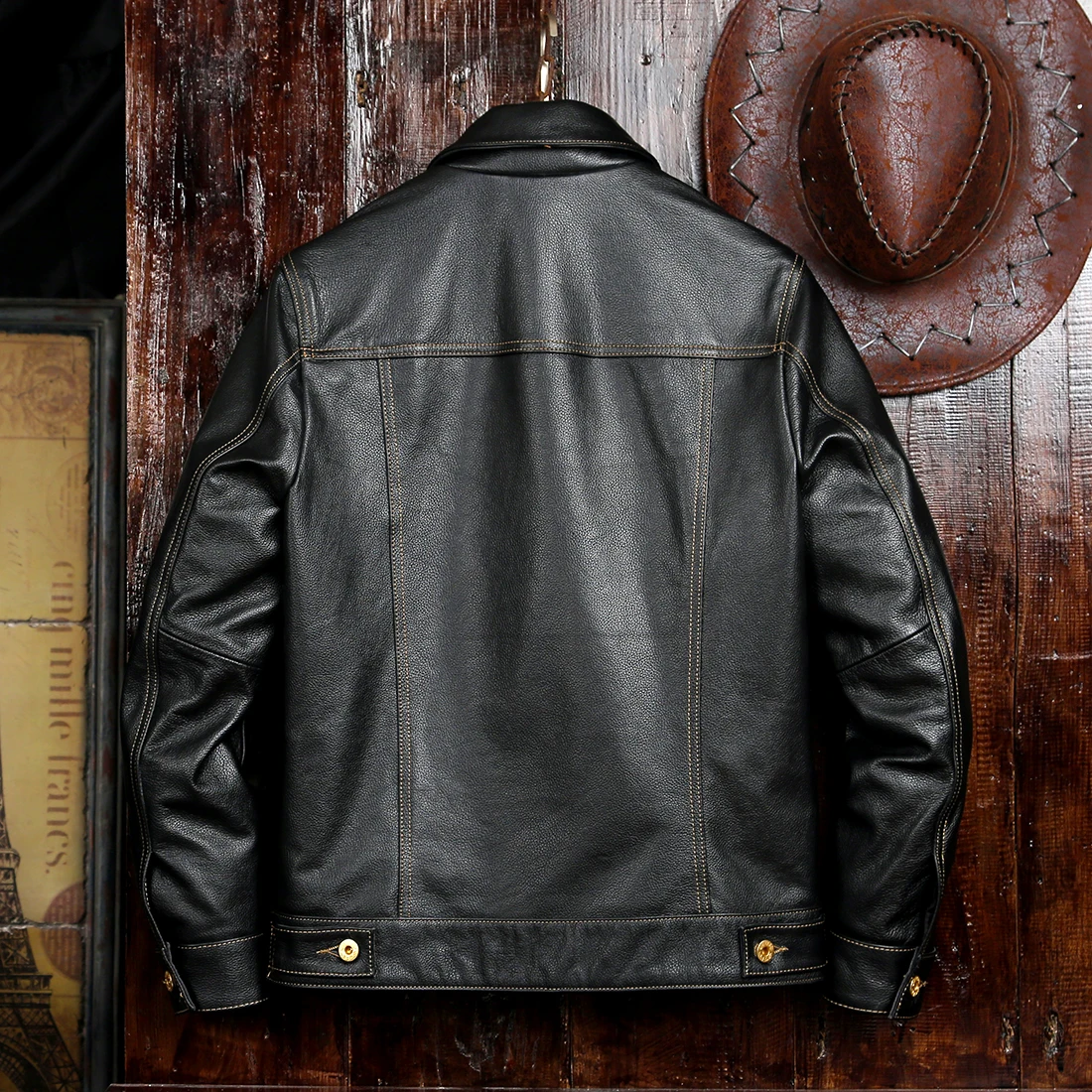 Classical 506 Style Men's Cowboy Natural Cowhide Jacket Slim Quality Genuine Leather Coat Man Short Single Breasted Clothes