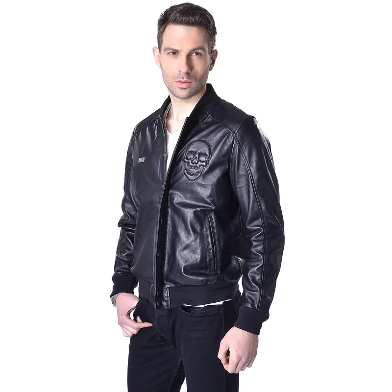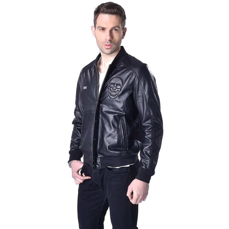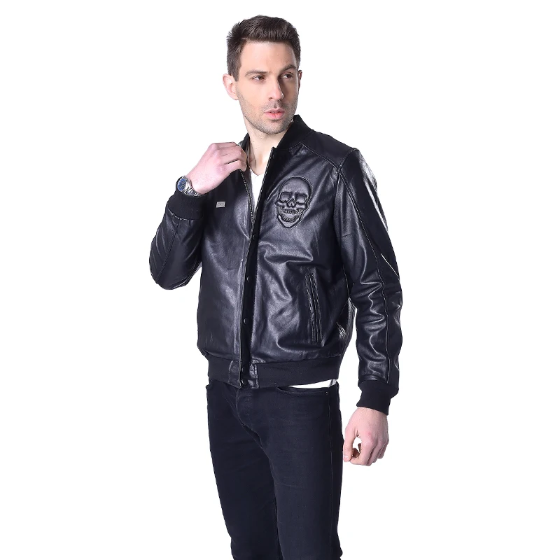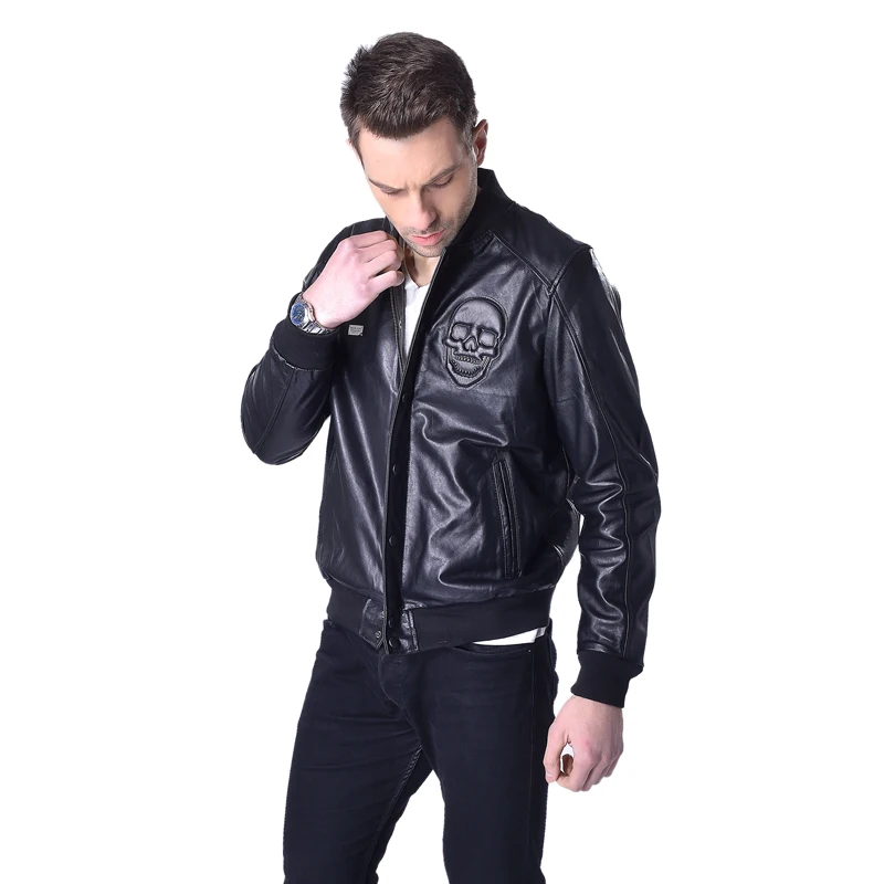 CLEARANCE SALE! Genuine Leather Jacket Men 100% Soft Sheepskin Leather Jackets Brand Skull Men's Leather Coat Spring M022