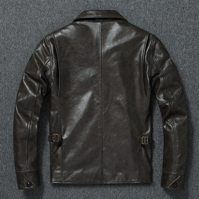 Genuine Cow Mens Leather Jacket Men Jackets Slim Gray Brown Stand Collar Oil Wax Jacket For Men Spring Autumn