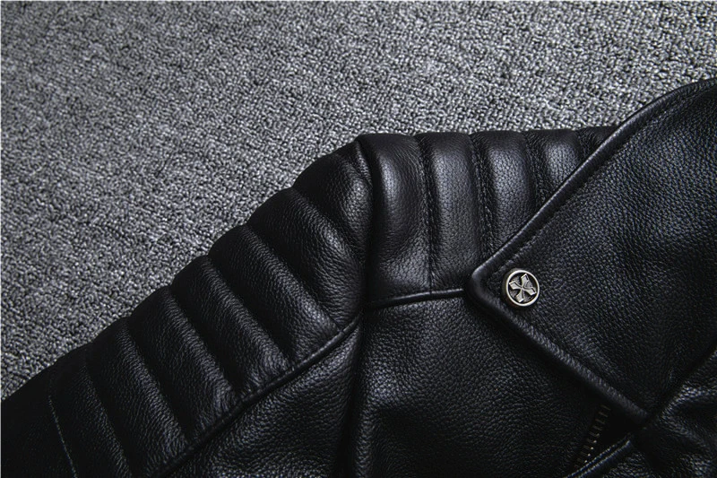 Genuine Leather Jacket Men's Real Natural Cowhide Motorcycle Style Jackets Moto Biker Racer Slim Coat Thick Calfskin 2XL-5XL