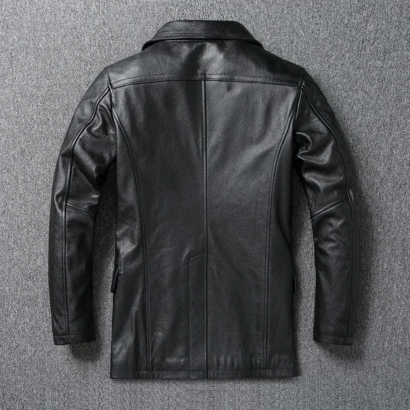 Long Men Leather Coat Genuine Soft Cow Leather Classic Double Breasted Turn Down Collar Leather Jackets For Men Clothing Autumn