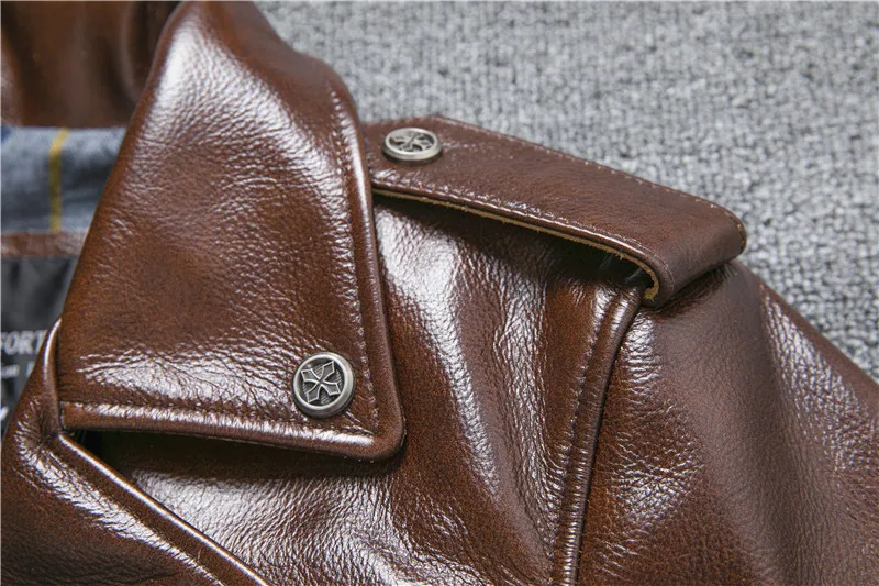 New Natural Oil Wax Calf Skin Jackets Men's Vintage Yellow Brown Leather Jacket Thick Turn Cowhide Slim Coats