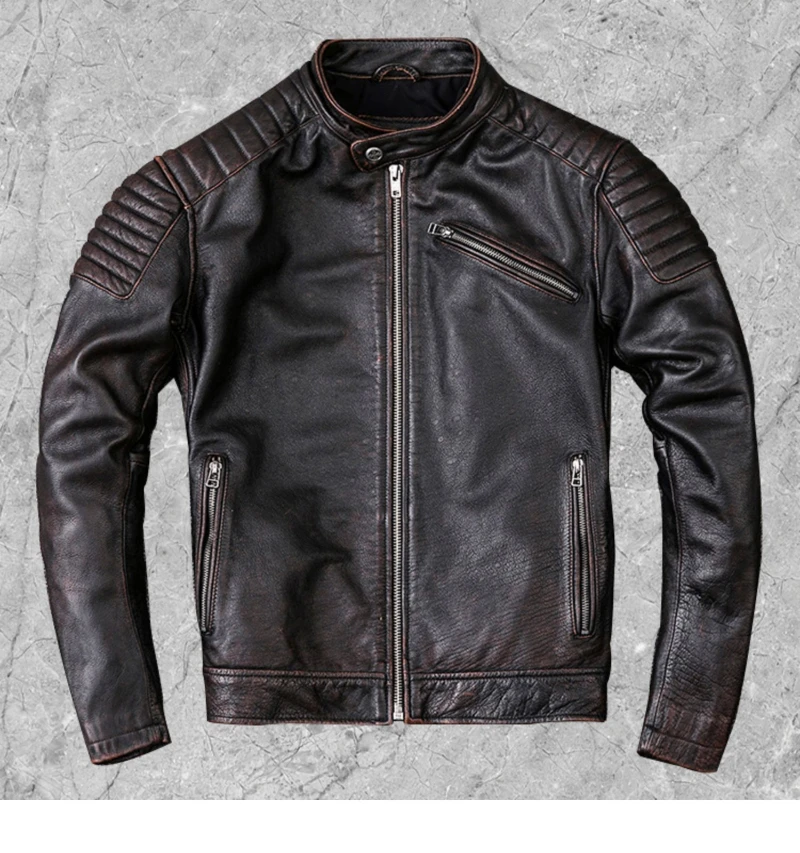 Spring Autumn Motorcycle Genuine Leather Jacket Men's Real Cowhide Coat Vintage Brown Slim Fit Clothes Chaqueta De Los Hombres