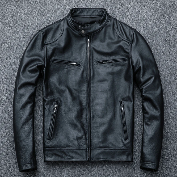 Spring Motorcycle Genuine Leather Jacket Men Cowhide Slim Short Coat Motor Biker Racer Natural Calf Skin Clothes Size S-5XL