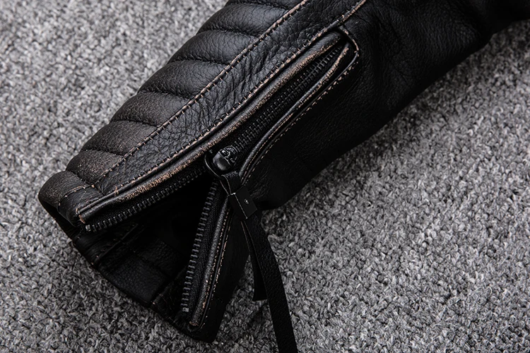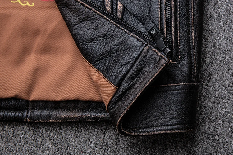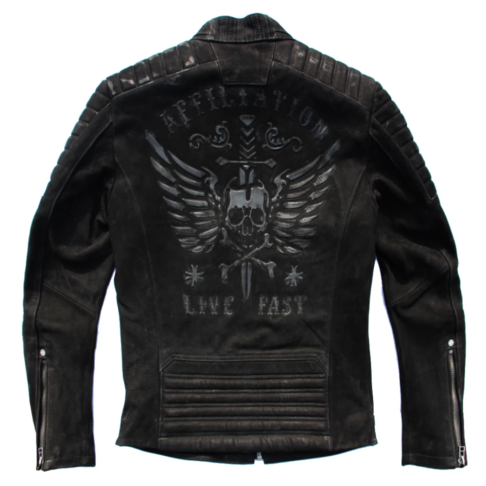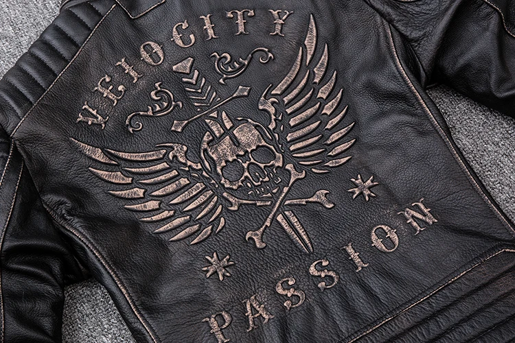 Vintage Motorcycle Jacket Skull 100% Cowhide Slim Fit Men Leather Jacket Distressed Moto Biker Coat Winter M203